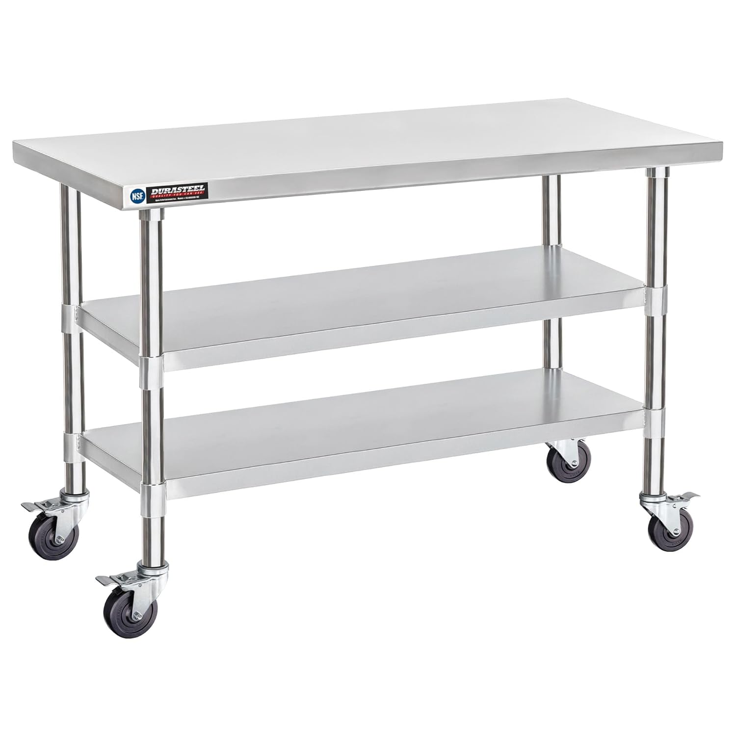 DuraSteel Stainless Steel Work Table 30" x 60" x 34" Height w/ 4 Caster Wheels - Food Prep Commercial Grade Worktable - NSF Certified - Good for Restaurant, Business, Warehouse, Home, Kitchen, Garage