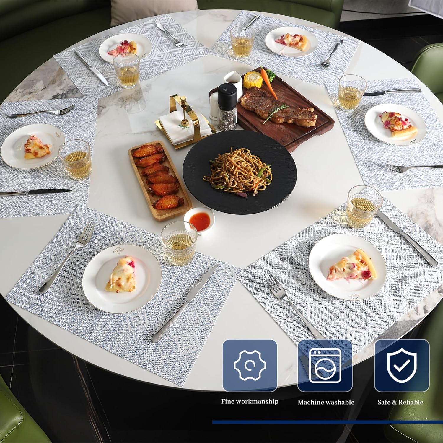 - 【Eco-Friendly Material】: EDanle placemats are made of high quality natural PVC/vinyl and polyester with long-lasting heat insulation and stain resistant features to provide protection for your table and prevent food residues and sauces from corroding the table and doilies for tables while adding fancy ambiance to your table