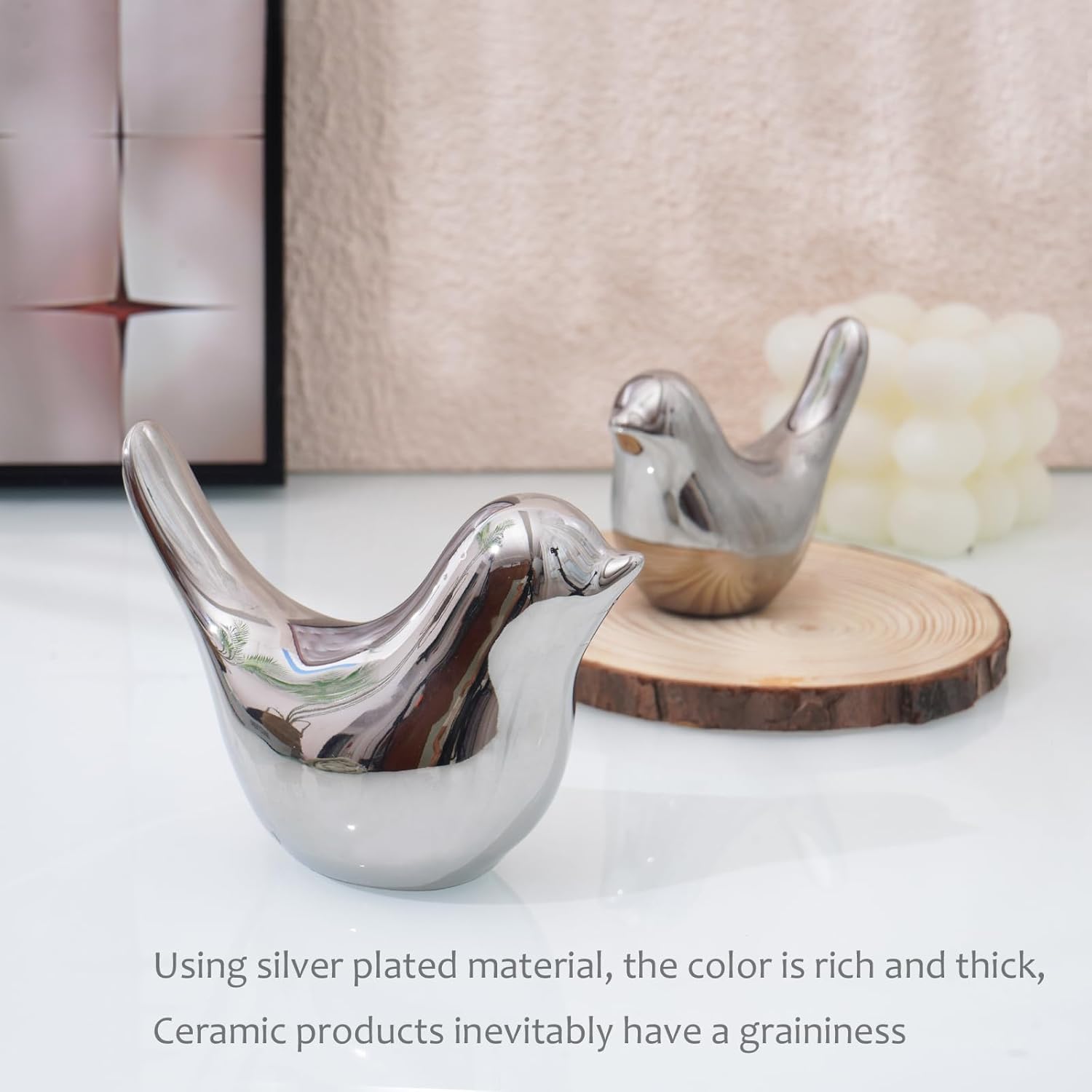 Notakia Small Birds Statues Home Decor Modern Style Decorative Ornaments for Living Room, Bedroom, Office Desktop, Cabinets (2Pcs Silver Birds)