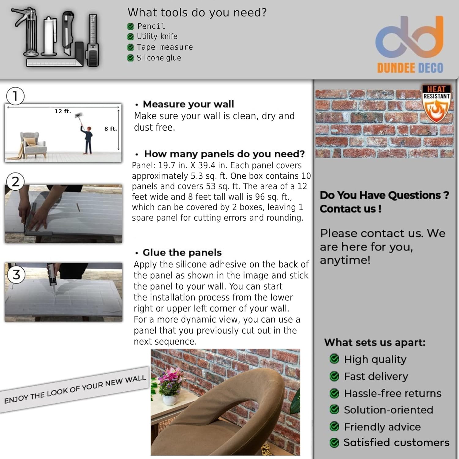 Dundee Deco 3D Wall Panels Faux Brick - Cladding, Red Brown Stone Look Wall Paneling, Styrofoam Facing for Living Room, Kitchen, Bathroom, Balcony, Bedroom, Set of 5, Covers 27 sq ft