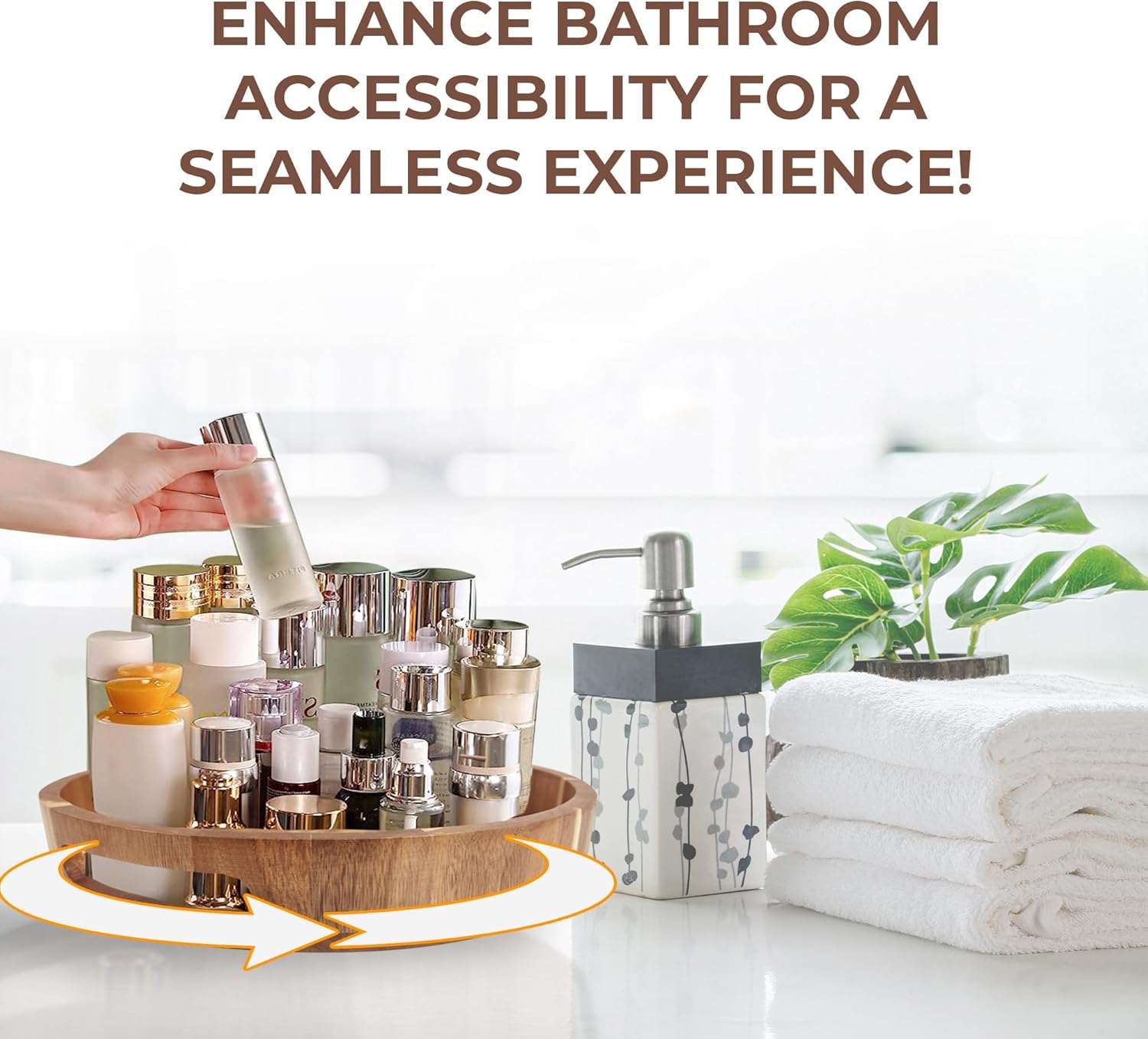 Lazy Susan for Table top 12 inch Wooden Large Lazy Susan Turntable Tray Organizer for Cabinet, Dining Table Centerpiece, Pantry, Kitchen Spice Cabinet Countertop Organizer, 100% Acacia Wood