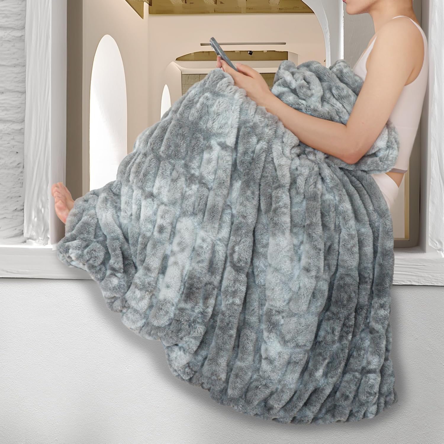 - Fuzzy Stretch Ruched Design for Stylish Comfort:Featuring a fuzzy and stretch ruched design, this blanket combines texture and luxury, giving your living space both comfort and style. The unique design enhances the luxurious feel, making it a perfect addition to any room