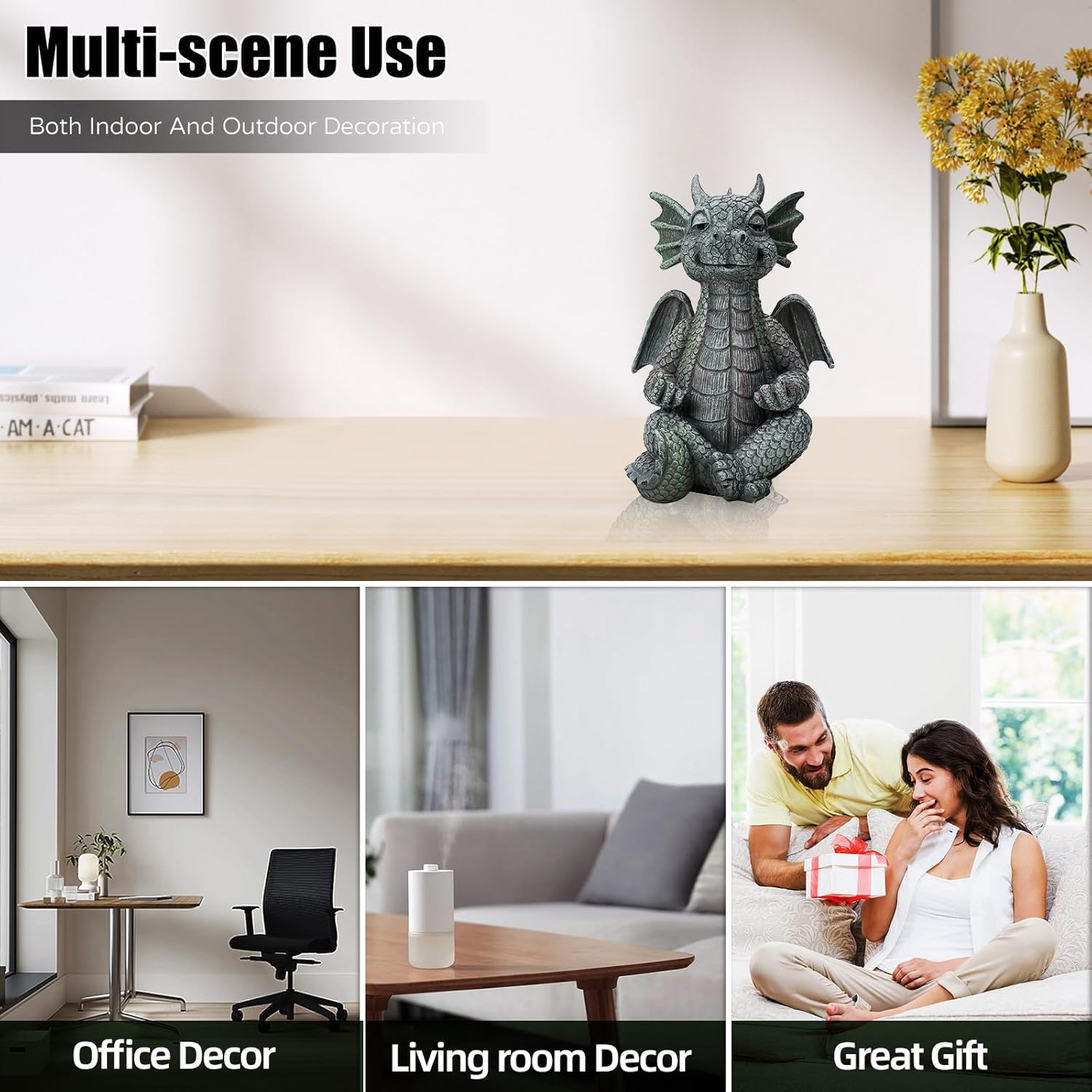 - 【Cute Design】The garden dragon statue is meditating in a yoga pose, with a creative, cute and fun shape, it will bring joy and zen to your garden and home for relaxation.