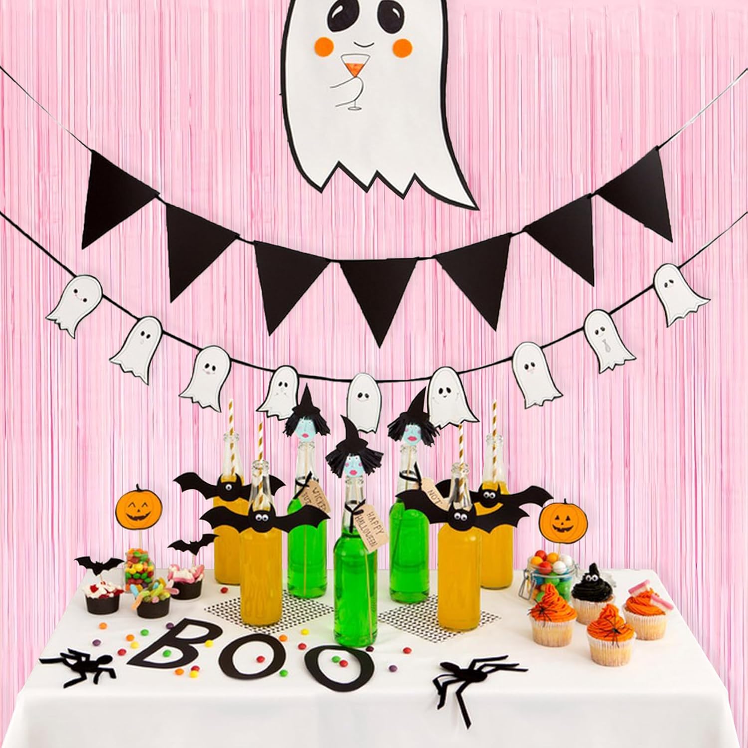 BRAVESHINE Pastel Pink Foil Fringe Curtains Tinsel Backdrop - 2 Pack Photo Booths Party Streamers Supplies for Halloweens/Boo Girls Princess Birthdays Bridal Shower Bachelorette Sweet Bow Decorations