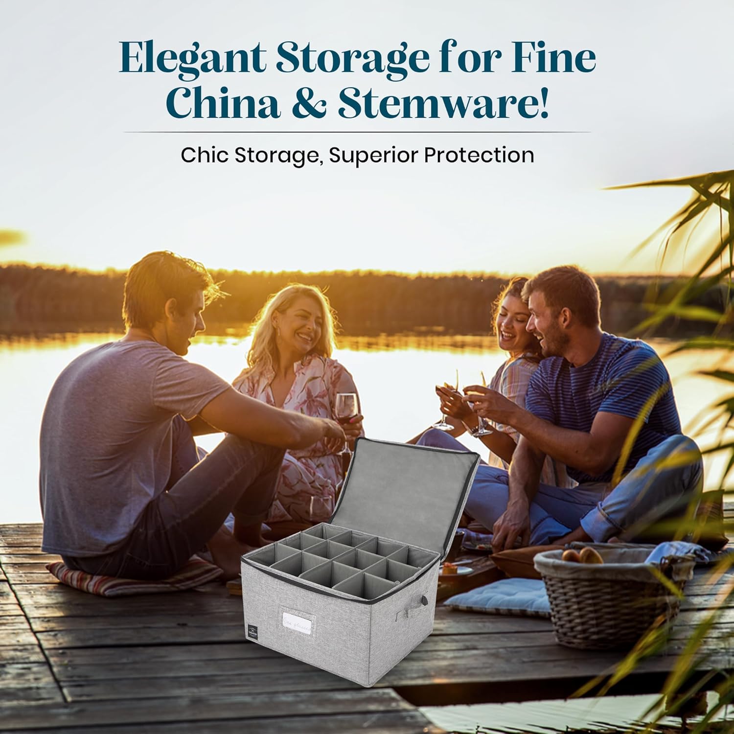 - LONGEVITY and DURABILITY: Extra security for your precious glassware with reinforced stitches ensuring longevity and durability, as well as easy-to-carry side handles for convenient carrying. Offering a secure home for your Christmas dishes, Thanksgiving plates, crystal, candles, and more, this dinnerware and stemware storage is a dependable and lasting solution for your precious china.