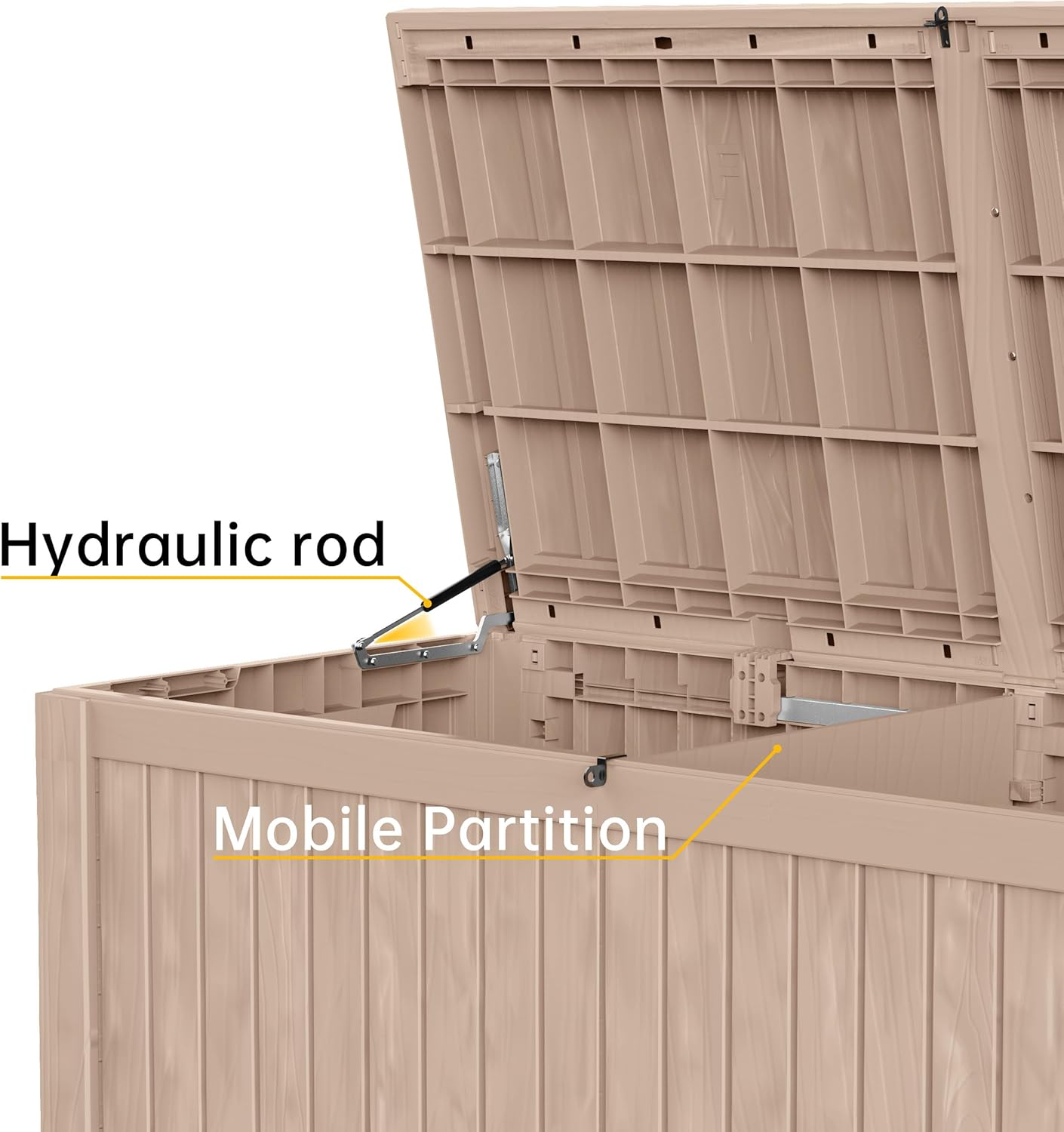 - Secure & Smooth Lid Operation:Features three reinforced crossbars and hydraulic support, ensuring a secure lid that won’t warp, even in high winds. Effortless opening and closing with smooth, controlled motion.