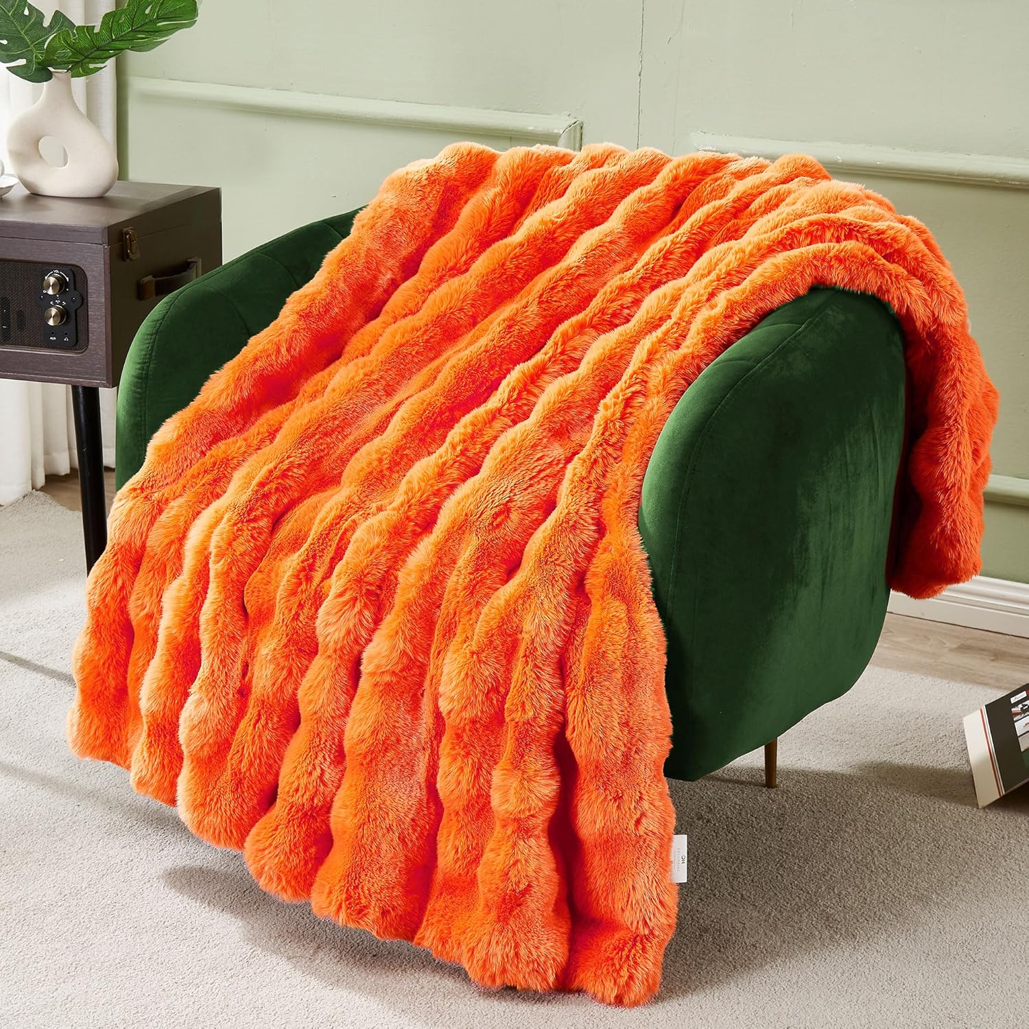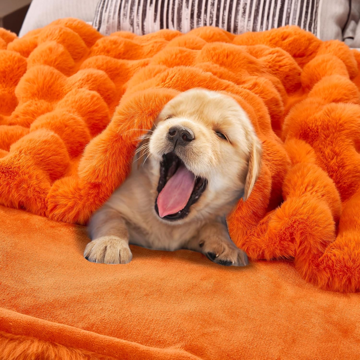 DREAMNINE Decorative Fuzzy Soft Fall Bubble Faux Fur Throw Blanket for Couch 50" x 60",Luxury Autumn Plush Fluffy Blankets,Cute Lovely Halloween Cozy Thick Warm Furry Blanket for Winter,Pumpkin Orange
