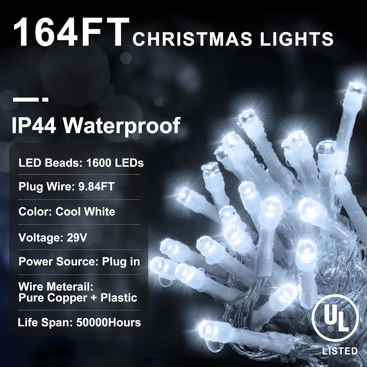 - Safer and Brighter: Upgraded higher brightness string lights are enough to cover the entire yard but non-dazzling. UL Listed Plug, 29V low output and Low-temp LED bulbs ensures safe to touch even after long time use. Very safety for kids and pets. Our Christmas lights is the most classic style, lighting along the eave, deck, balcony, stairs, fence, creates a charming atmosphere.