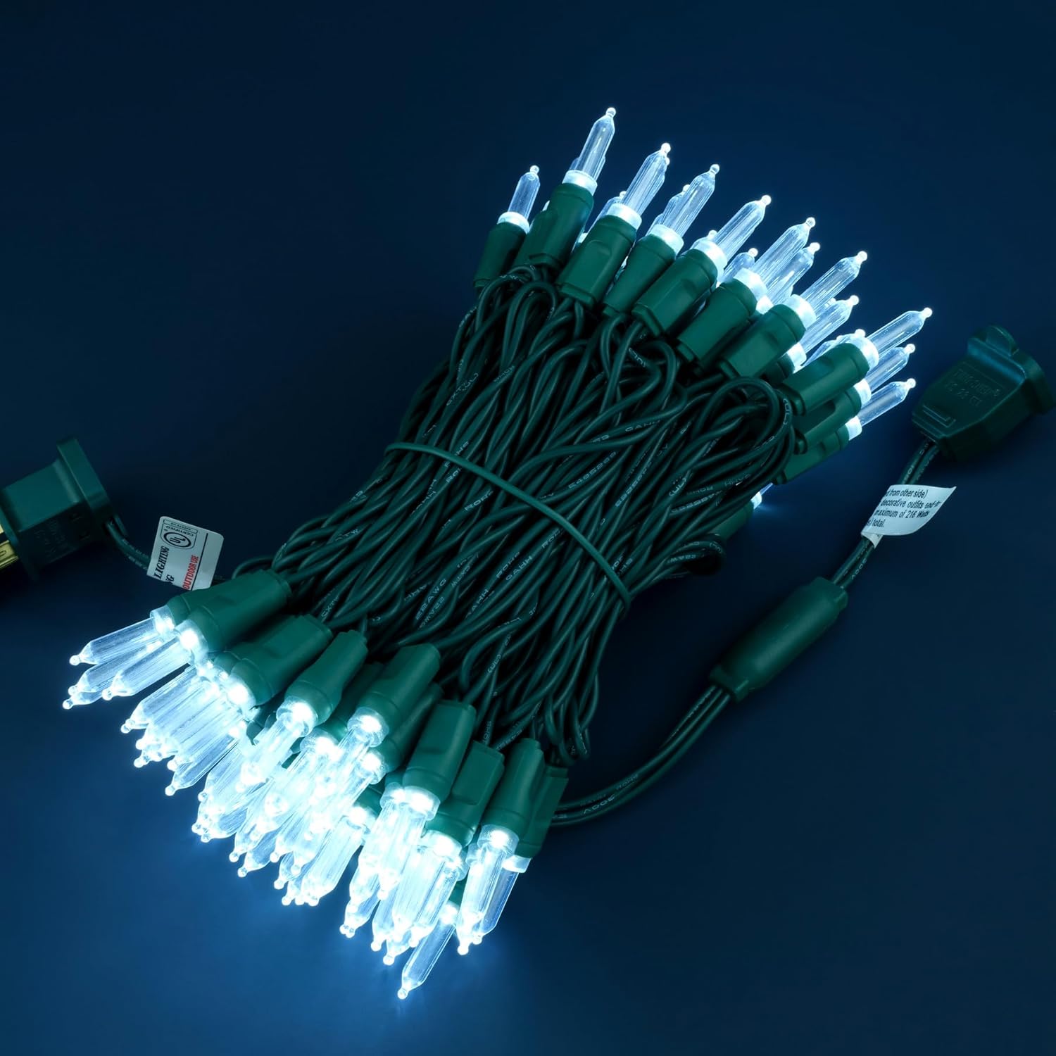 100 Cool White One-Piece LED Christmas Lights, 33 ft Green Cord High Waterproof UL Certified T5 Outdoor String Lights (Cool White)