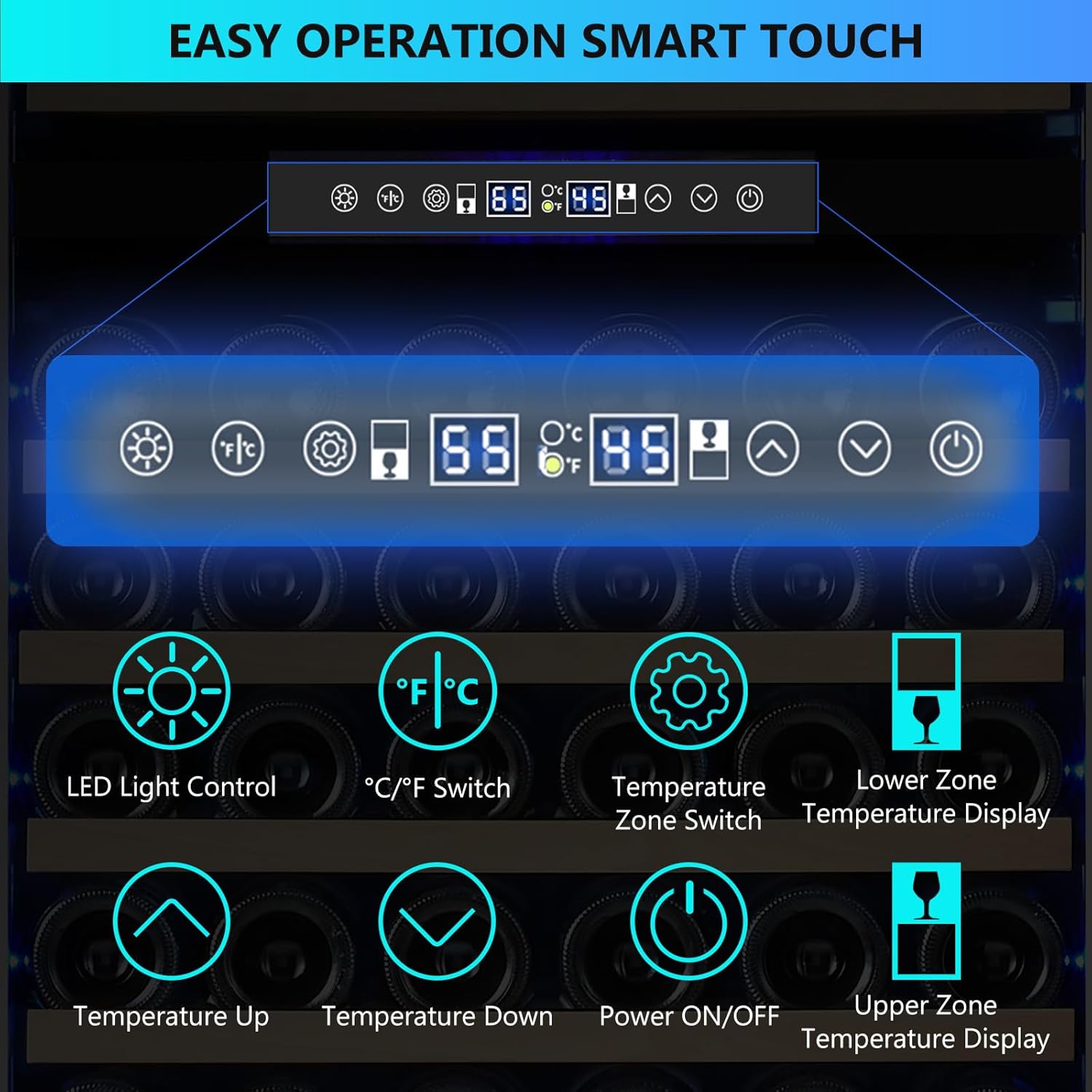 - 【Advanced Compressor Cooling and Circulation System】The ORYMUSE large dual-zone wine refrigerator employs cutting-edge compressor technology and a robust circulating fan, delivering rapid, powerful, and stable cooling. The internal upper and lower zone air circulation system ensures even distribution, allowing you to store different wines according to specific temperature range needs. Adjustable temperature range for the upper zone: 40-55°F (5-13°C), lower zone: 55-65°F (13-18°C).