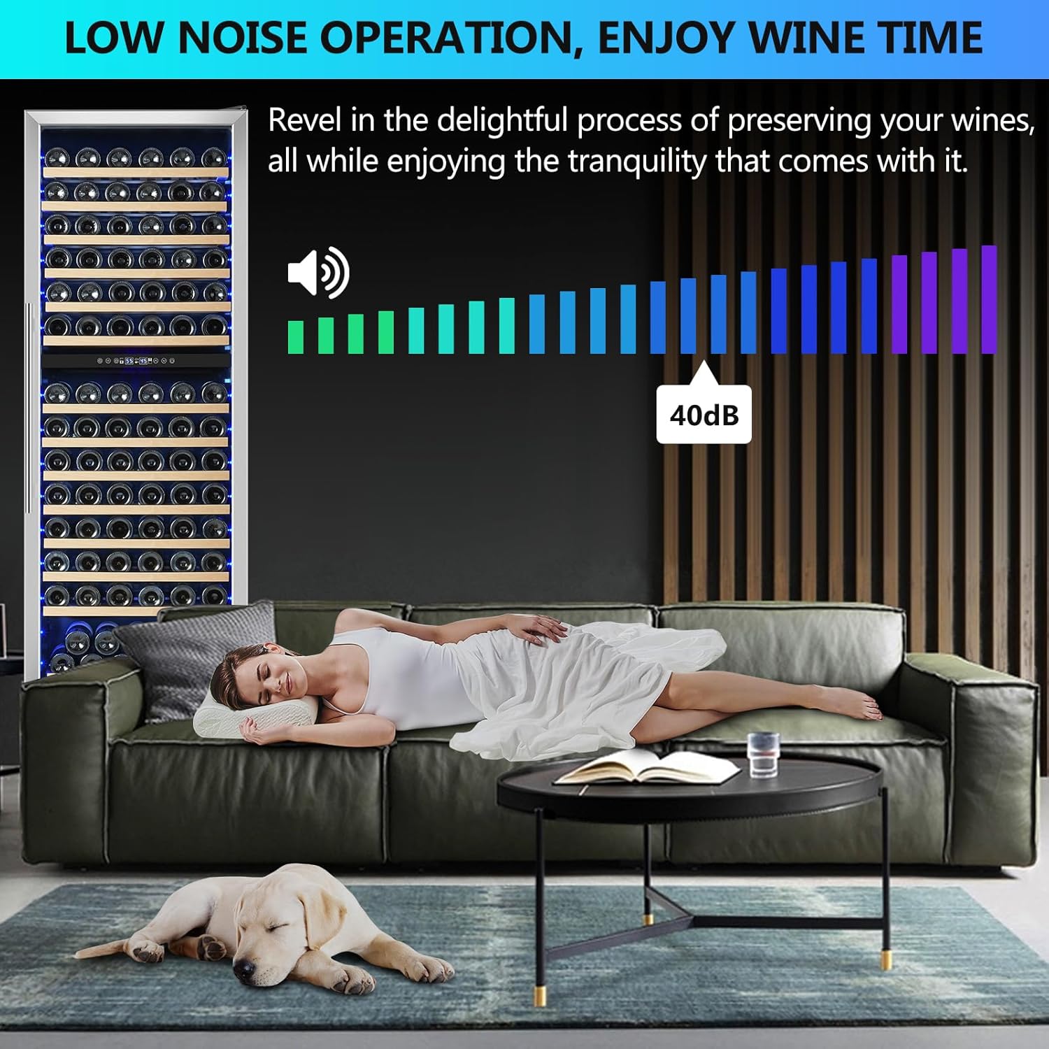 Dual Zone Wine Fridge Freestanding 175 Bottle, 24 Inch Large Capacity Built-in Wine Cooler Refrigerator with Upgraded Compressor Cooling and Intelligent Temperature Memory