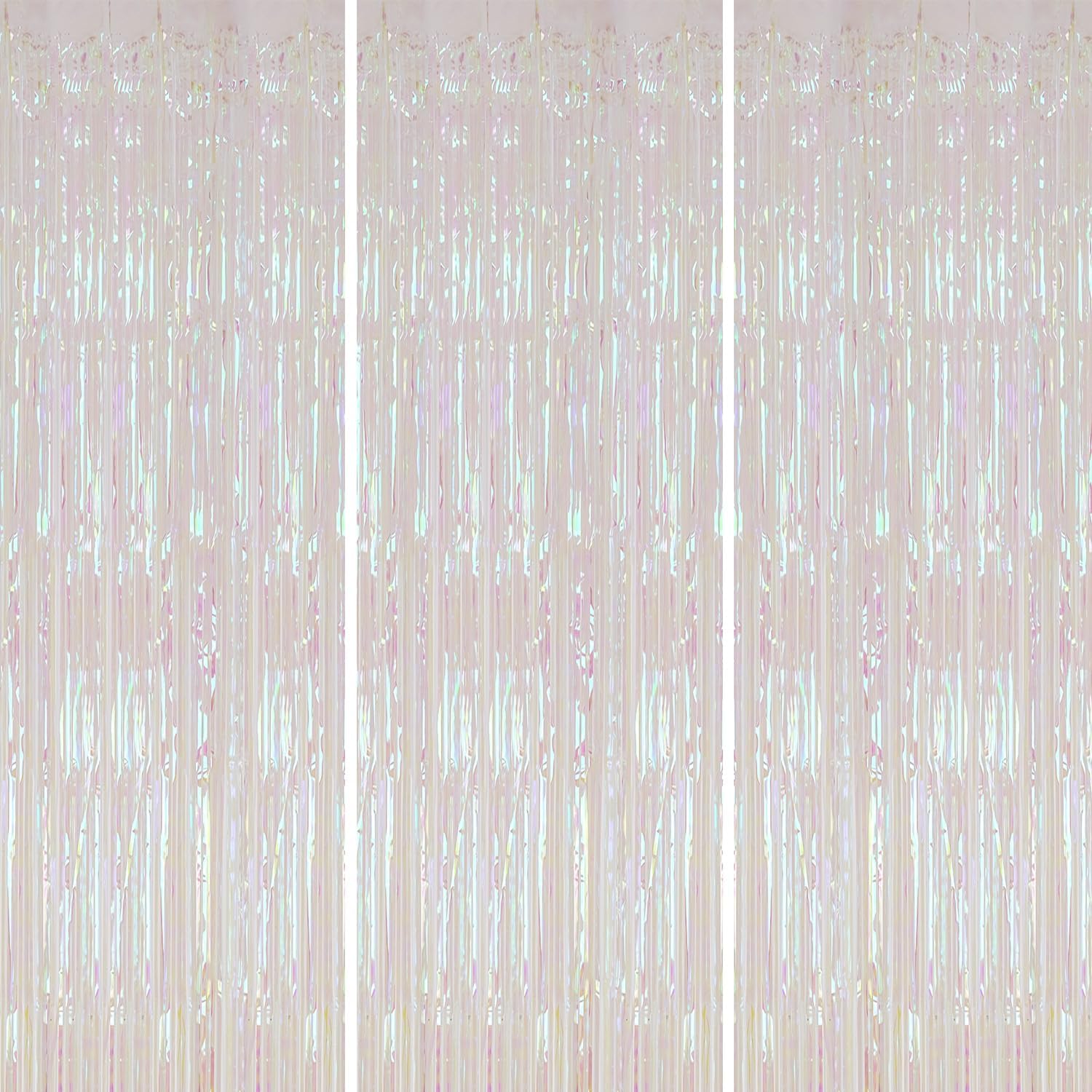 3 Pack Foil Fringe Backdrop, 3.3x8.2 Feet Tinsel Curtains, Transparent Rainbow Party Decor Steamers, Fringe Backdrop Curtains for Birthday Graduation Christmas Theme Party Decorations