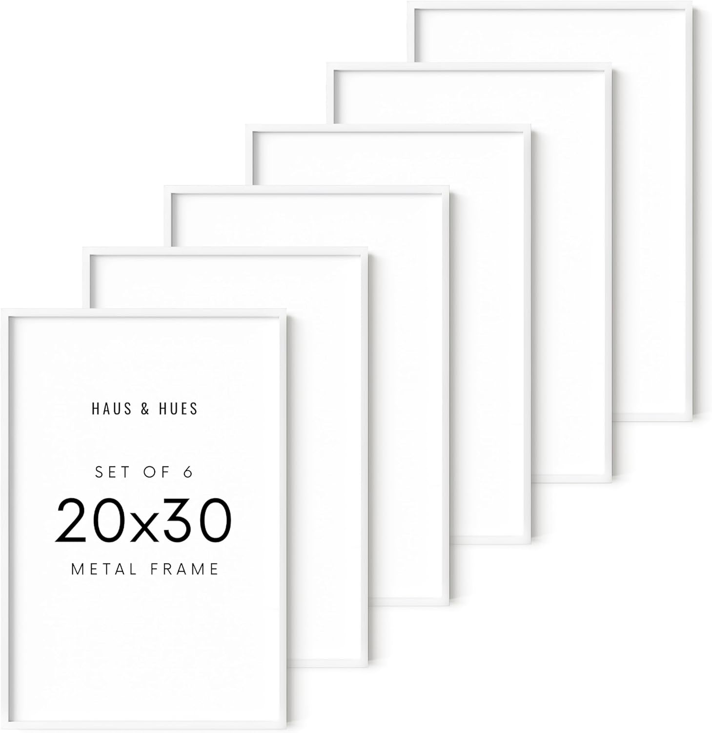 HAUS AND HUES 20x30 White Metal Picture Frames - Features Premium Aluminum, Vertical & Horizontal Hang, Shatterproof Plexiglass - Perfect for Home, Room, Office (20x30 in, White, Set of 6)