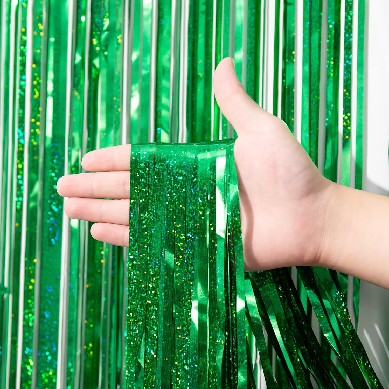 3 Pack 3.3 x 8.2 ft Laser Green Foil Fringe Backdrop Curtains, Tinsel Streamers Birthday Party Decorations, Fringe Backdrop for Graduation, Baby Shower, Gender Reveal, Disco Party