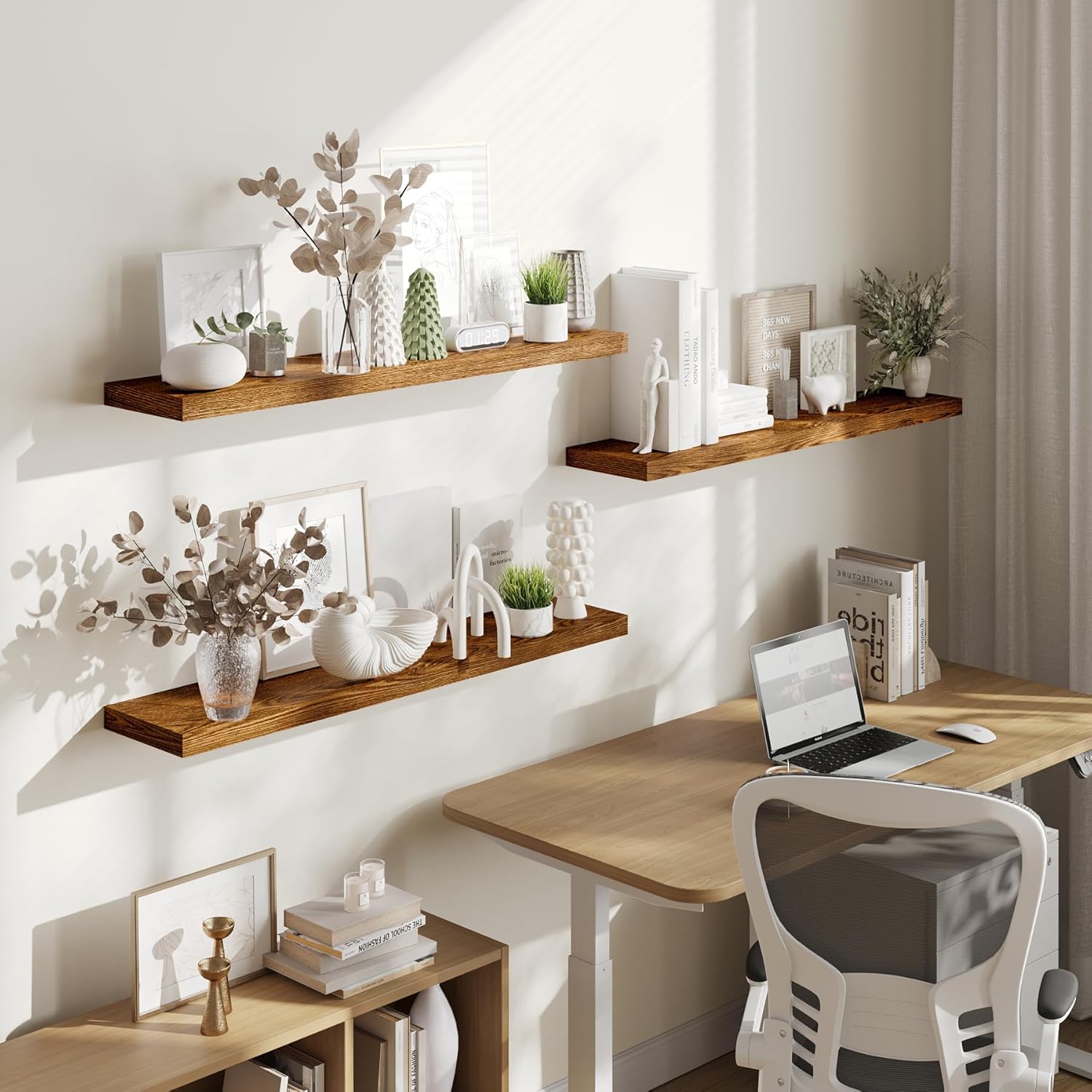 - GREAT FOR ANY ROOM: Our wood floating shelves are made of MDF with a frosted surface texture for a mordern feel that blends perfectly into a variety of different scenes; Having this large floating shelf not only for its decoration effect, but also for its high practicality; It can be used for organizing all household rooms, such as bedroom, living room, study, toilet, cloakroom, even kitchen and warehouse