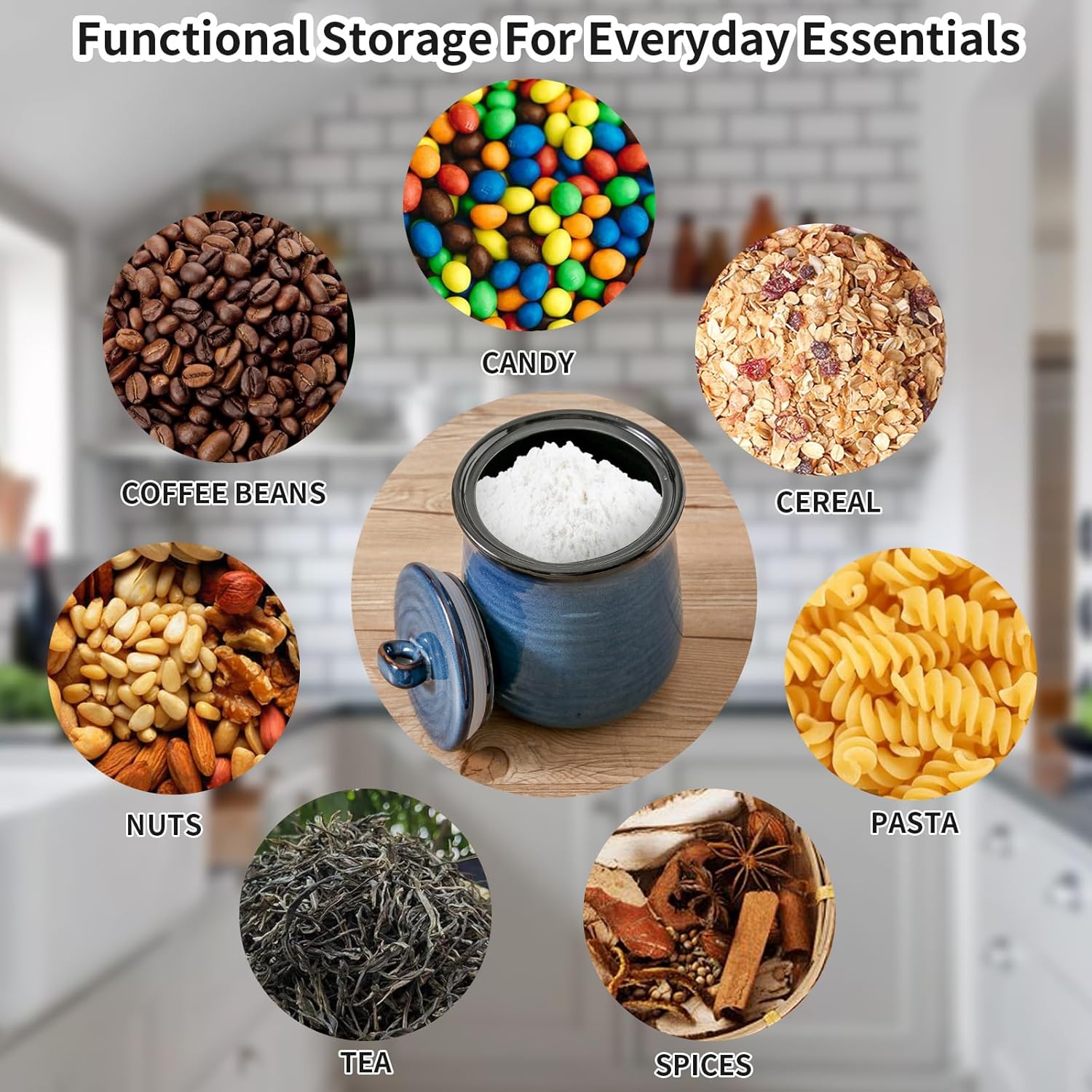 - EASY-GRIP LID: Hasense ceramic kitchen canister designs with an easy-to-grip knob for easy opening and closing. And the ceramic cover with airtight seal ring can preserve the freshness of your ingredients. Our ceramic food storage jar allows the flavor of food to remain intact.
