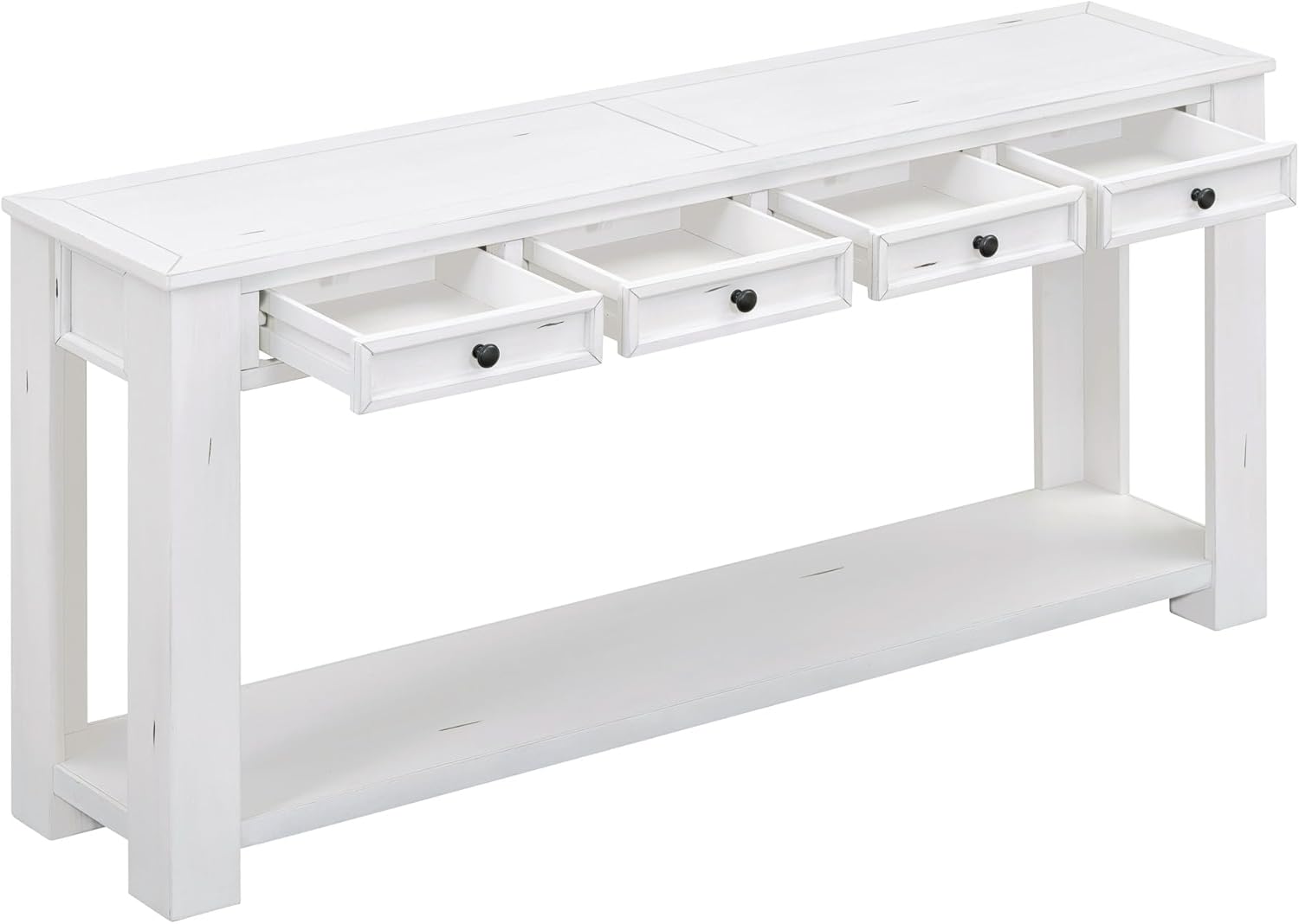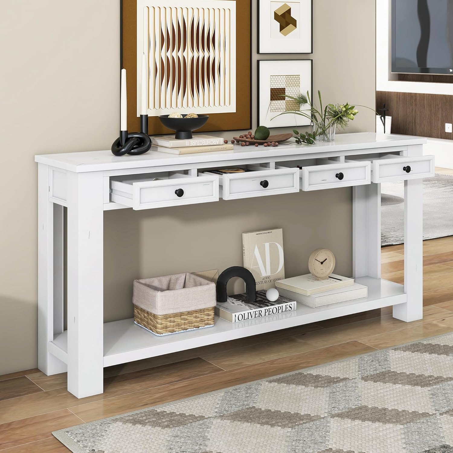 White Console Table,Solid Wood Sofa Table with 4 Drawers Hallway Table for Storage Entry Foyer Behind Couch Table,Fully Assembled (63" White)
