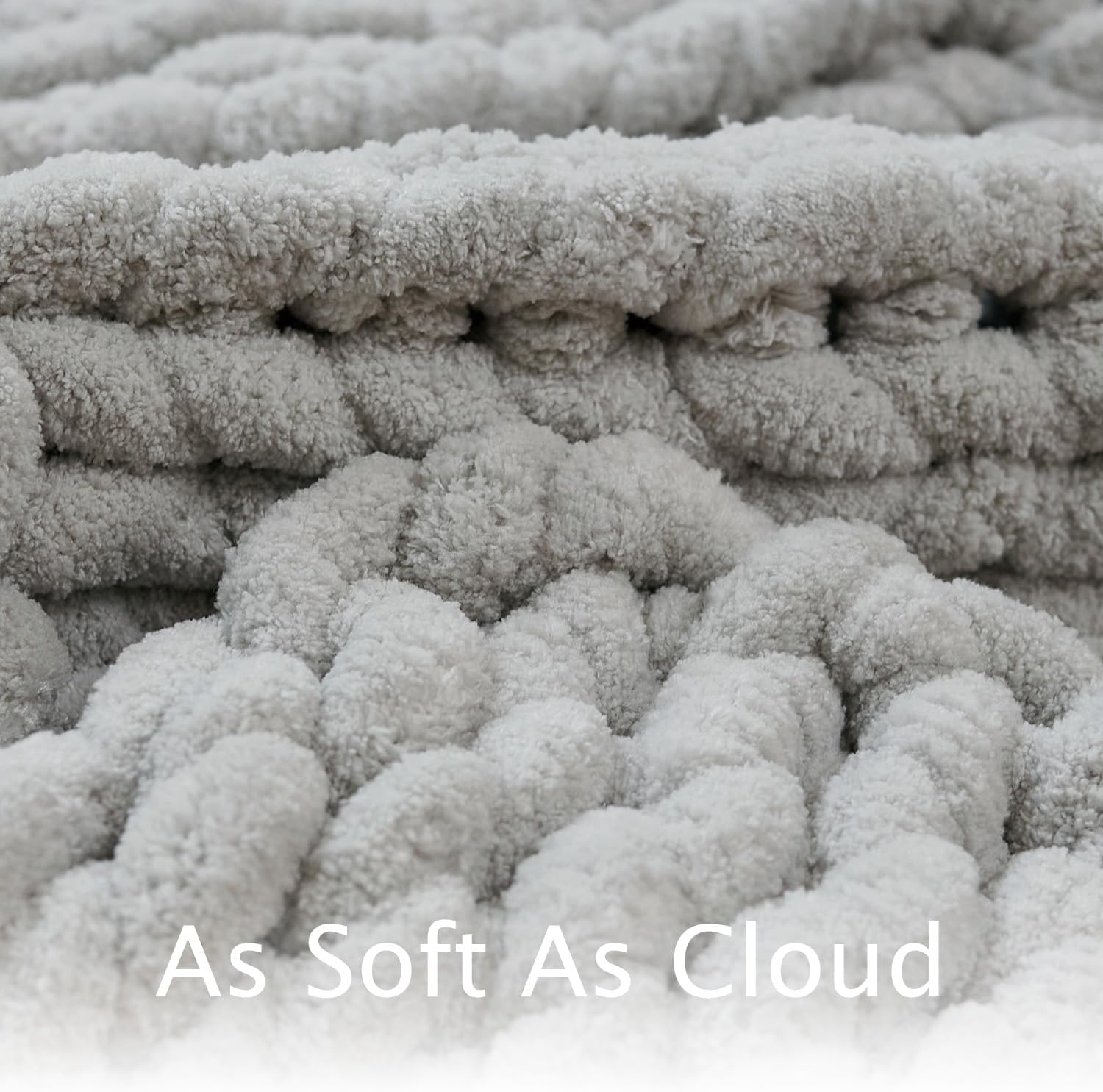Esterra Chunky Knit Throw Blanket Newly Upgraded Heavy Tighter Version, Handmade Chenille Throw Super Soft, Thick Yarn Cable Knit Crochet Throw Blanket for Couch Bed Sofa (50"x60" Light Grey)