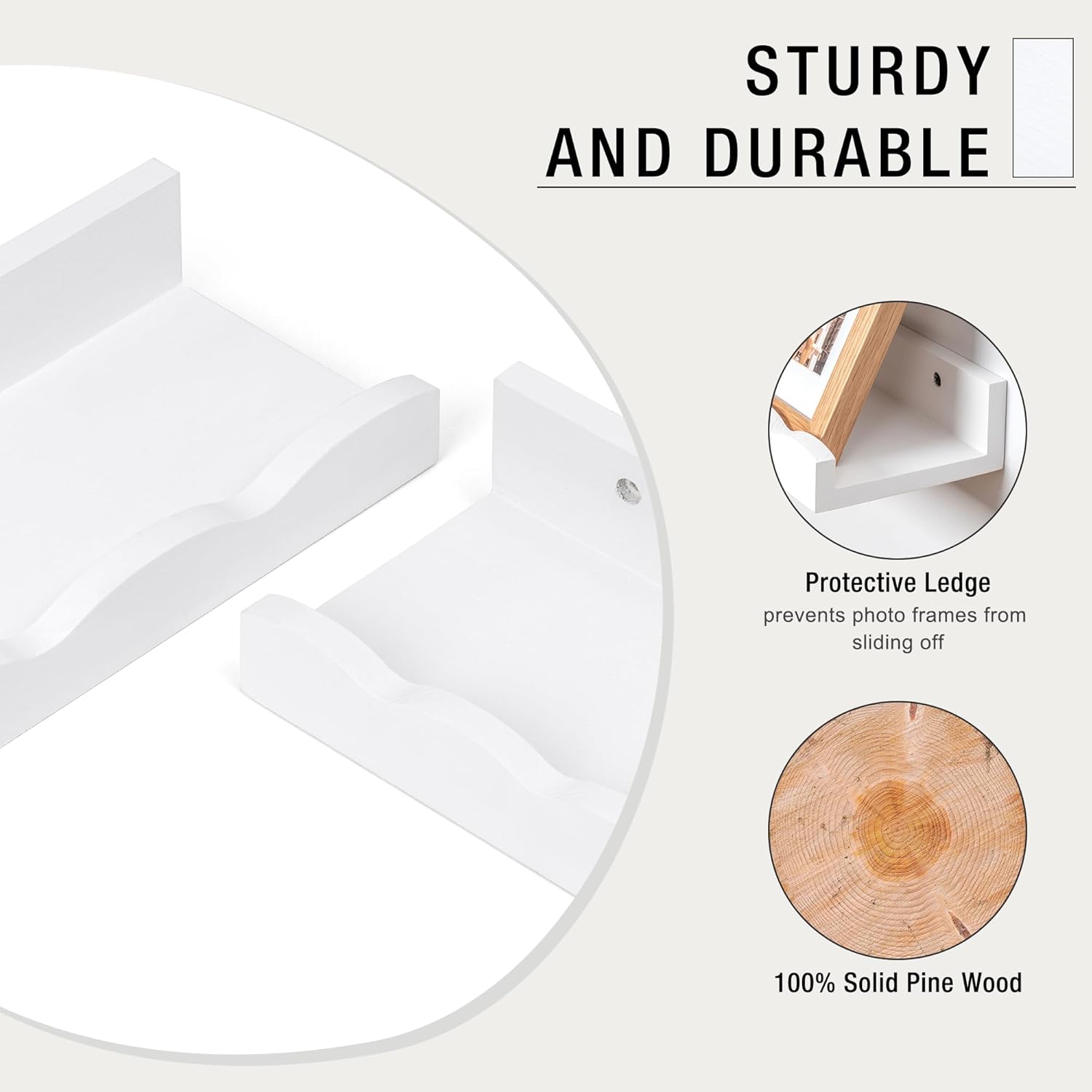 Fun Memories Picture Ledge Shelf for Wall, 24 inch Pine Wood Nursery Book Shelves Set of 2- Wall Book Shelves for Kids Room, Home Decor - Kitchen Spice-White