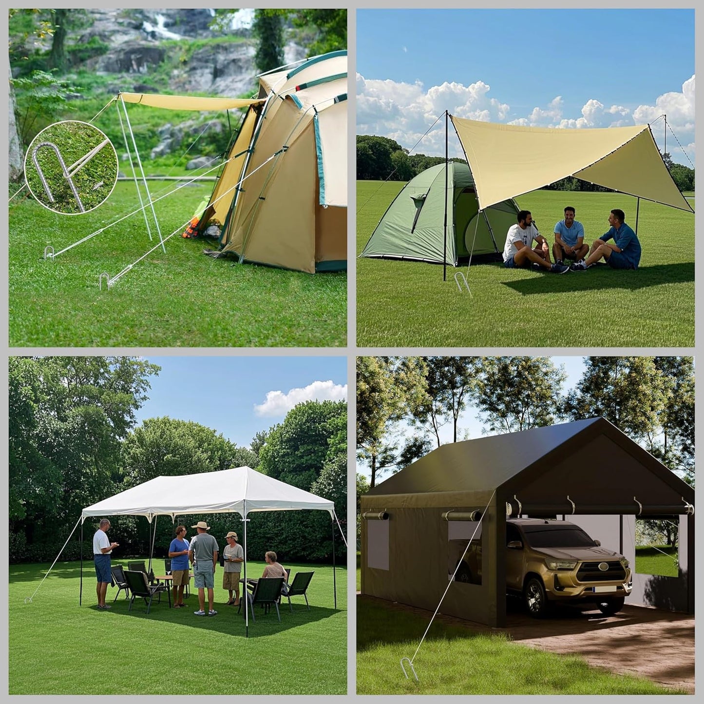 - Wide Applications--These heavy duty stakes for high wind work great for securing tents, trampolines, soccer goals, patio furniture in any weather and also perfect for pinning down weed fabric on tough soil or keeping outdoor decorations from blowing away