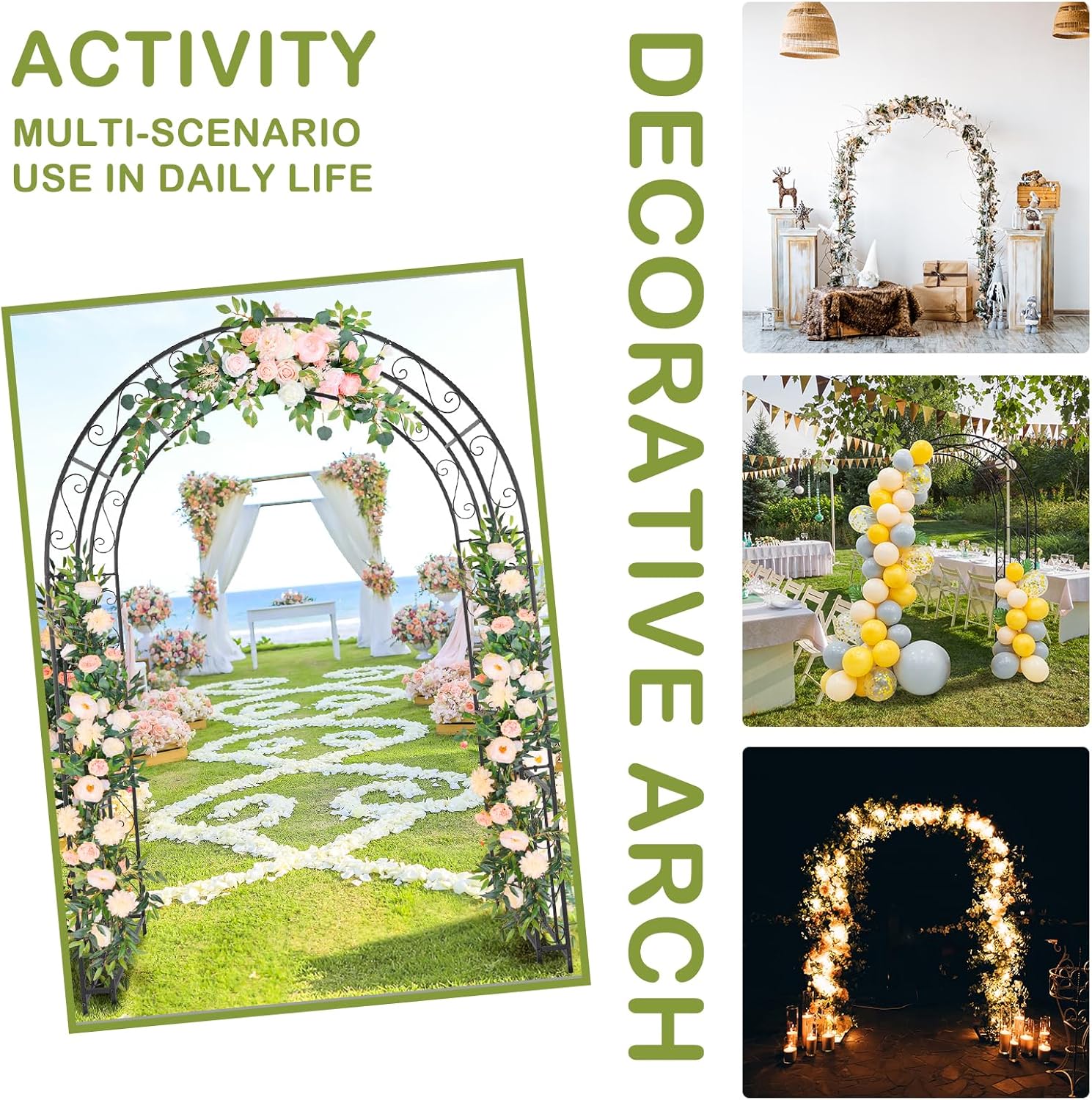 - 【GREAT FOR EVENTS】This walkway trellis is also great for weddings, anniversaries, birthday party, Christmas or other important occasions decoration. Decorate it with balloons, leaves, party banners, tulle, LED fairy lights or anything else you want, makes your events classic and fabulous