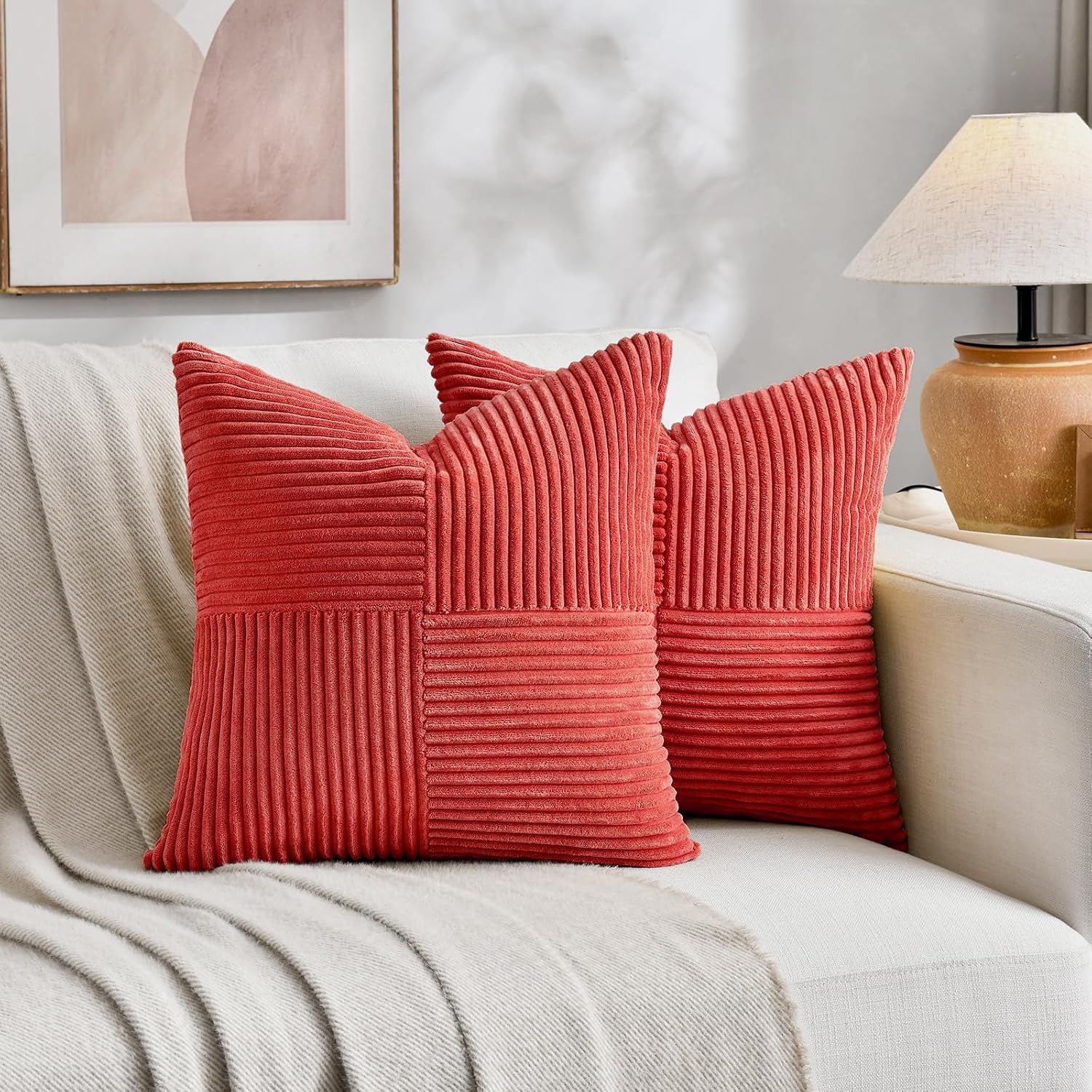 Fancy Homi 2 Packs Red Big Decorative Throw Pillow Covers 24x24 Inch for Couch Bed Sofa, Holiday Christmas Home Decor Gift, Soft Corss Corduroy Patchwork Accent Square Cushion Case 60x60 cm