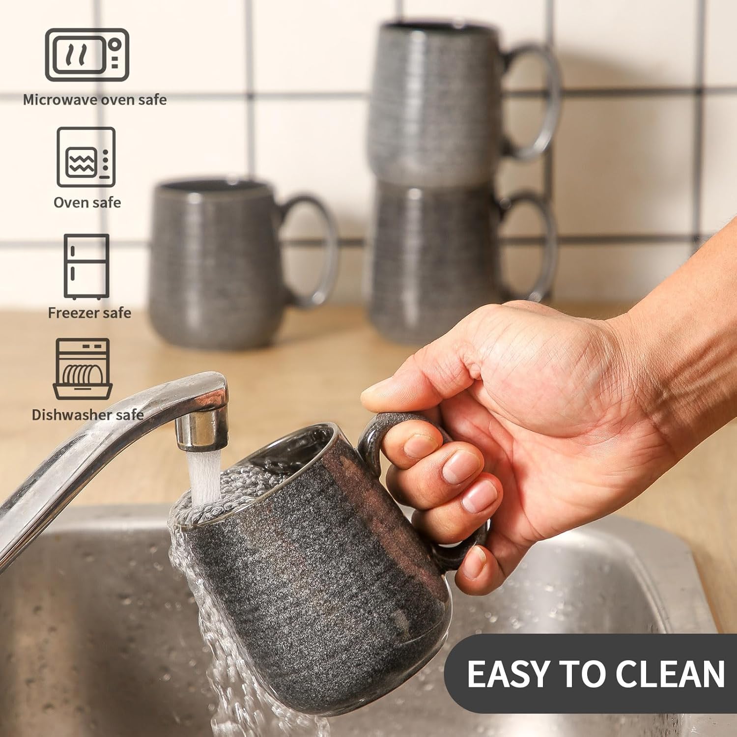 Hasense Ceramic Coffee Mugs - 15 OZ Large Coffee Cups Set of 4 with Handle for Hot Beverage, Porcelain Latte Mugs for Tea, Milk, Cocoa, Cappuccino and Mocha, Microwave and Dishwasher Safe, Grey