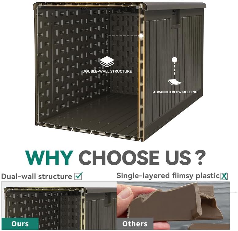 - DOUBLE-WALL CONSTRUCTION:Unique dual wall structure raises sturdiness & durability to the next level; All-weather guard resin pairs with wooden texture to imbue a natural touch for lasting outdoor use