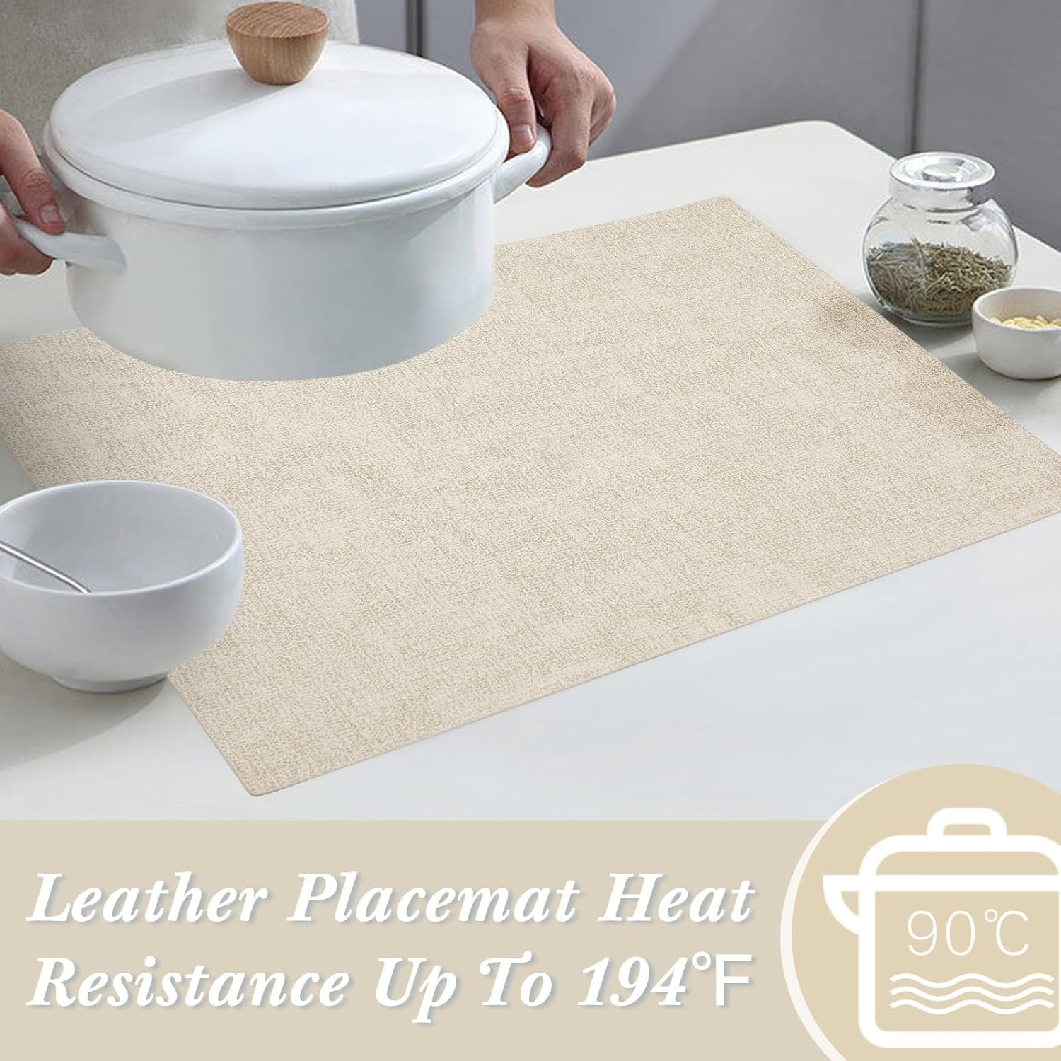 - Heat Resistant Table Mats - SUEH DESIGN table mats are thickend can withstand temperatures up to 194°F (90°C), ensuring your table is protected from burns and stains. You can confidently place hot plates on our placemats without any concerns.