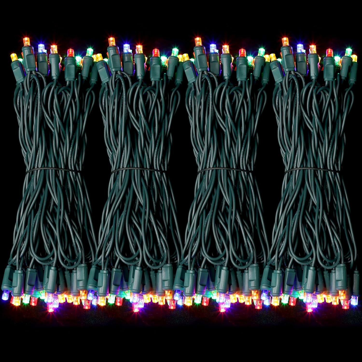 - One-Piece 5MM Commercial Decoration LIGHTS : 50ft 100 LED Lights (50 Lights 25ft X2Groups), 6-inch spacing. Green wires have a wide range of uses and are perfectly integrated with green plants or shrubs.no extra adapter is needed,bulbs are cool to touch,with the rectifier,keep the light steady (not twinkle).