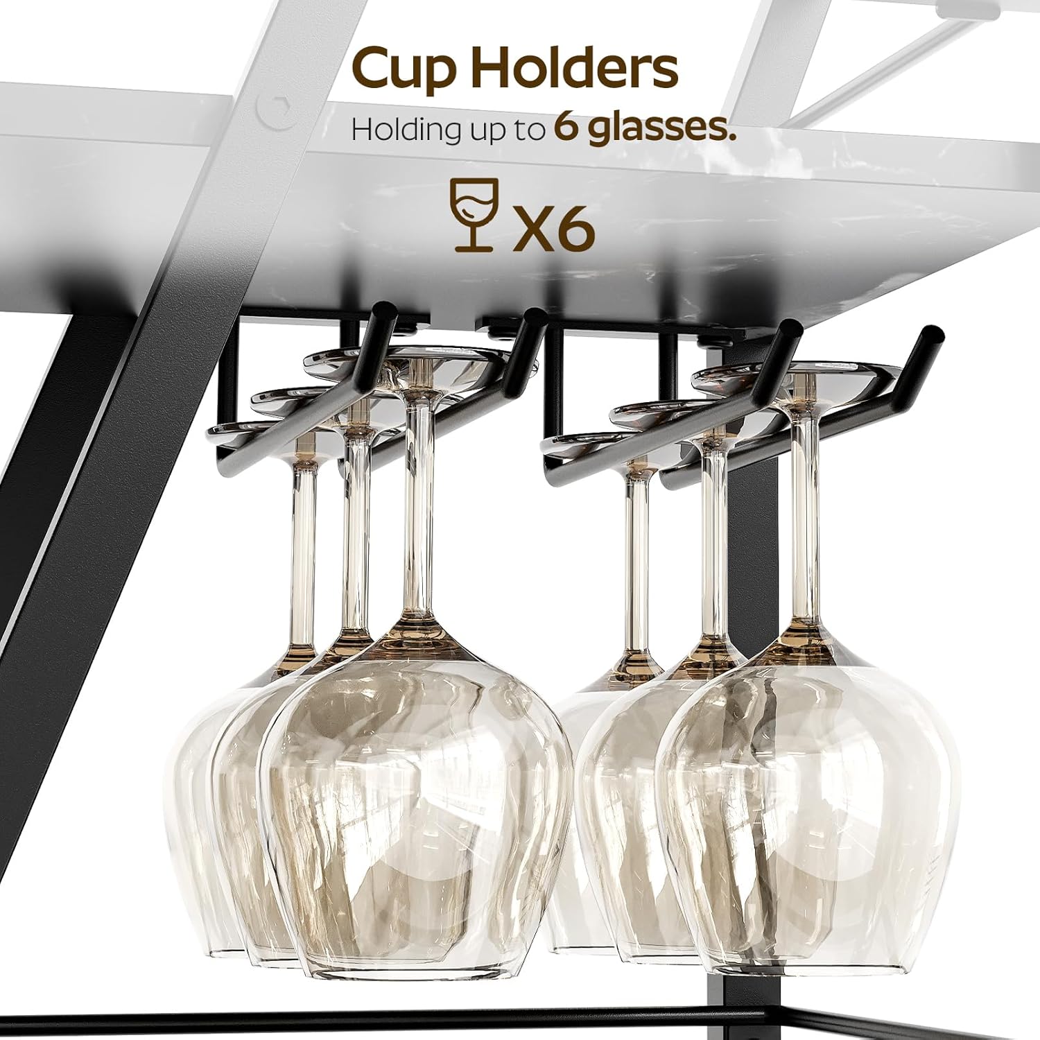 - Cup Holders Included: This bar cart has 2 quality metal cup holders for storing 6 goblets, ensuring stability while the cart is in motion. Whether you're preparing drinks or moving the cart during a gathering, you can use it with confidence