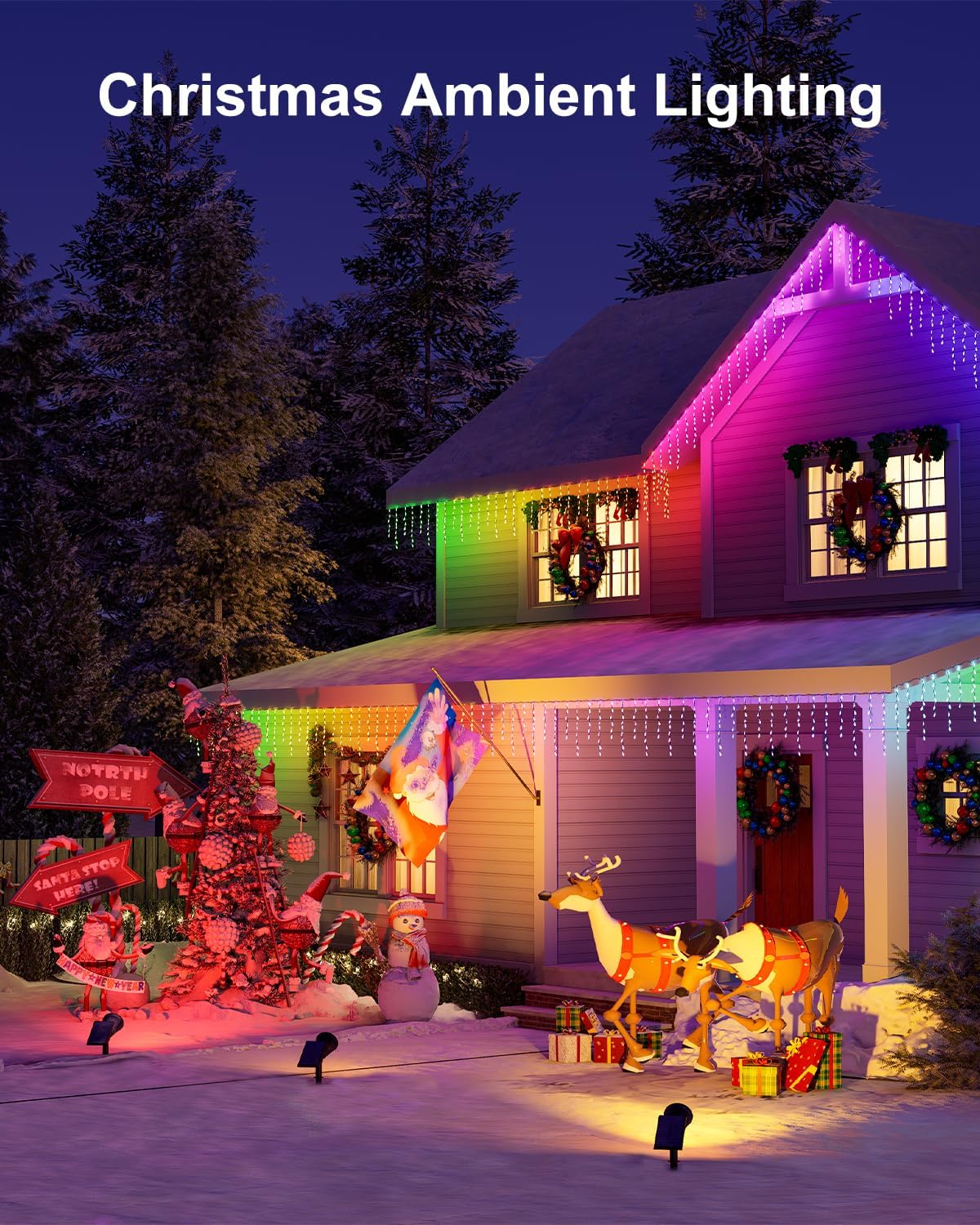 - Personalised Light Color for All Festivals: The color changing solar spot lights are not only suitable for Christmas, but also meet the needs of other festivals such as Halloween, Easter, Independence Day, etc. You can choose the appropriate light colours according to the characteristics of different festivals to create personalised scenes, making your home and yard show unique charm in every festival