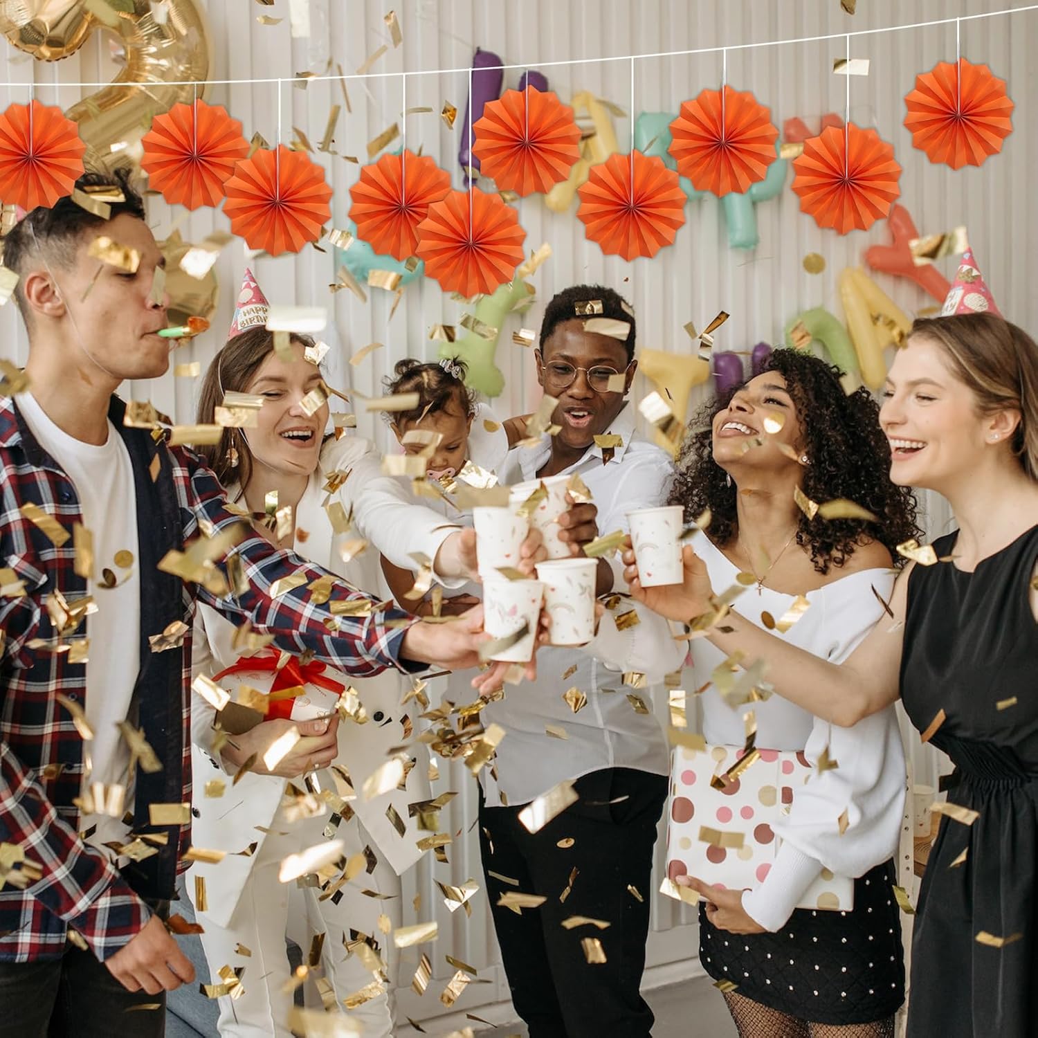 Orange Birthday Party Decorations,DIY Orange Paper Fans Hanging Decoration,8in Halloween Paper Fans,Halloween Decor,Fox Birthday Decorations Events Accessories 30 Color DIY Set (Orange)