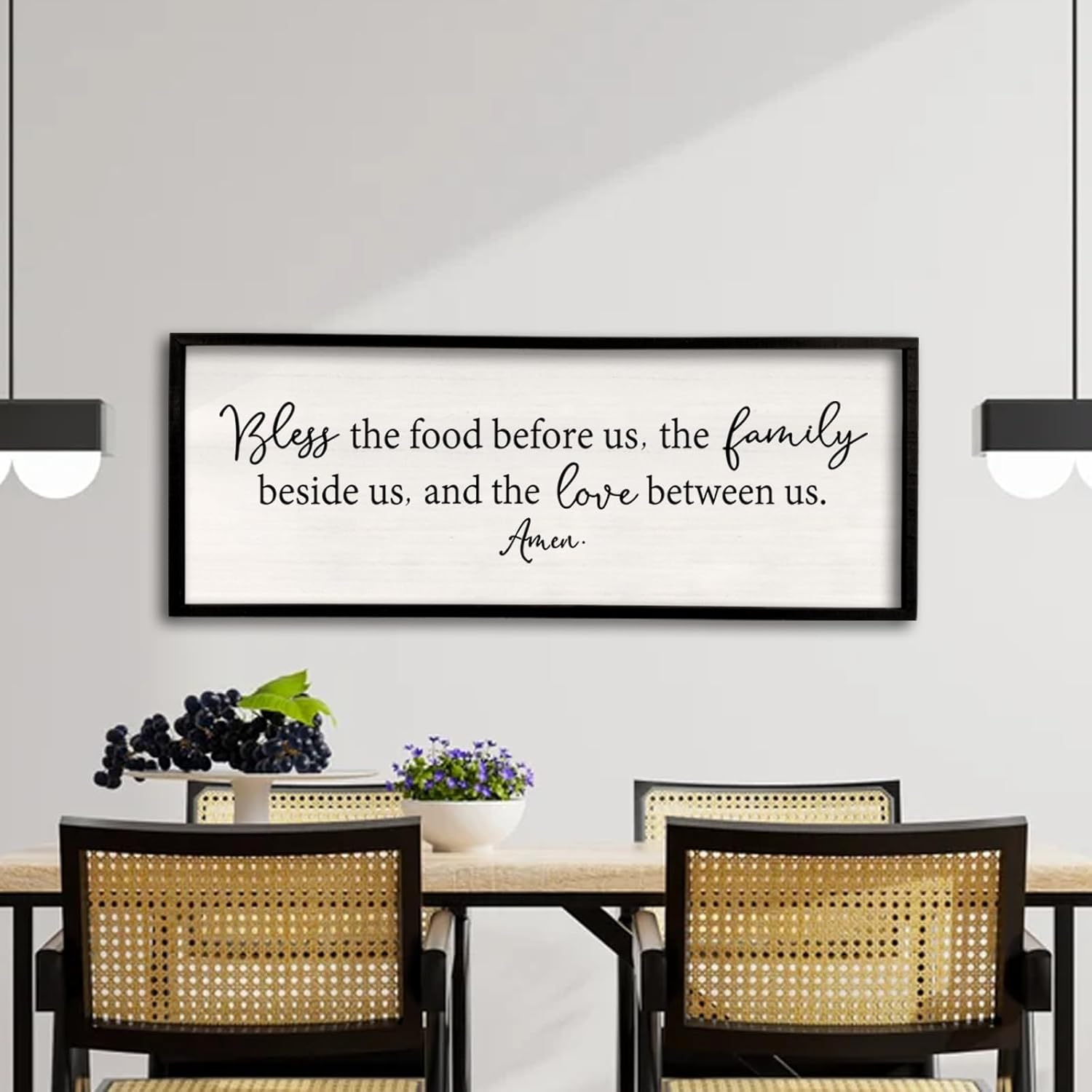 Bless the Food Before Us Sign Wall Decor 32''×12'' Large Farmhouse Dining Room Wall Decor Framed Wood Rustic Home Wall Art Kitchen Decoration (Black)