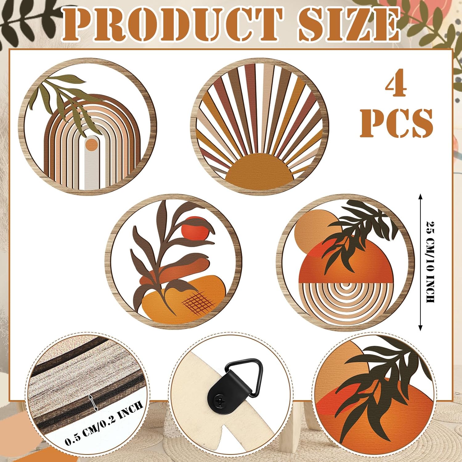 Qunclay 4 Pieces Boho Wall Art Wooden Bohemian Wall Decor Hanging Art Nursery Decor Farmhouse Geometric Hanging 10 Inch Aesthetic Wood Minimalist for Apartment Bedroom(Stylish)