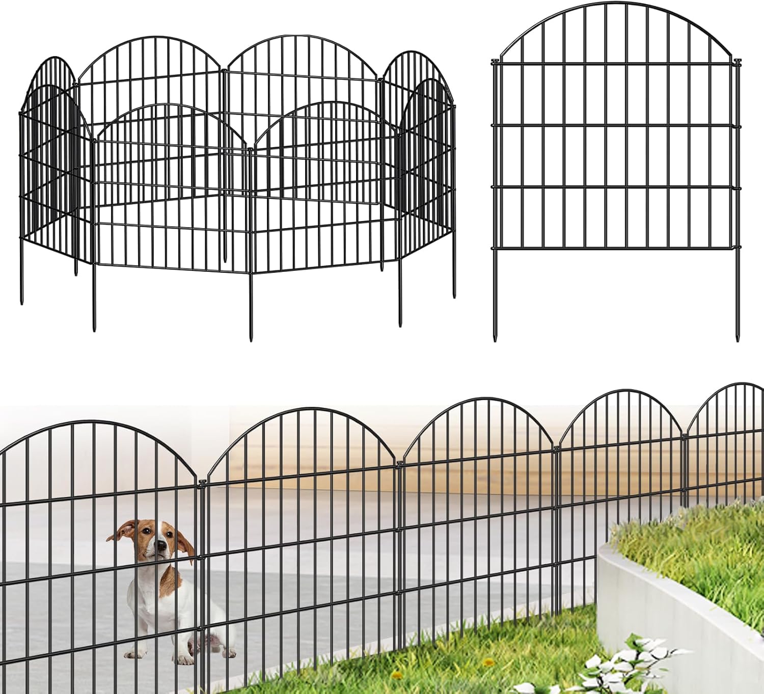 - STURDY AND STABLE: This fencing for yard is welded by Gauge 9 thickness iron wires, the stakes are 10mm in diameter, and can be extended pretty far into the ground which is fairly steady, it works well as a yard fencing panels for small or medium size dogs.