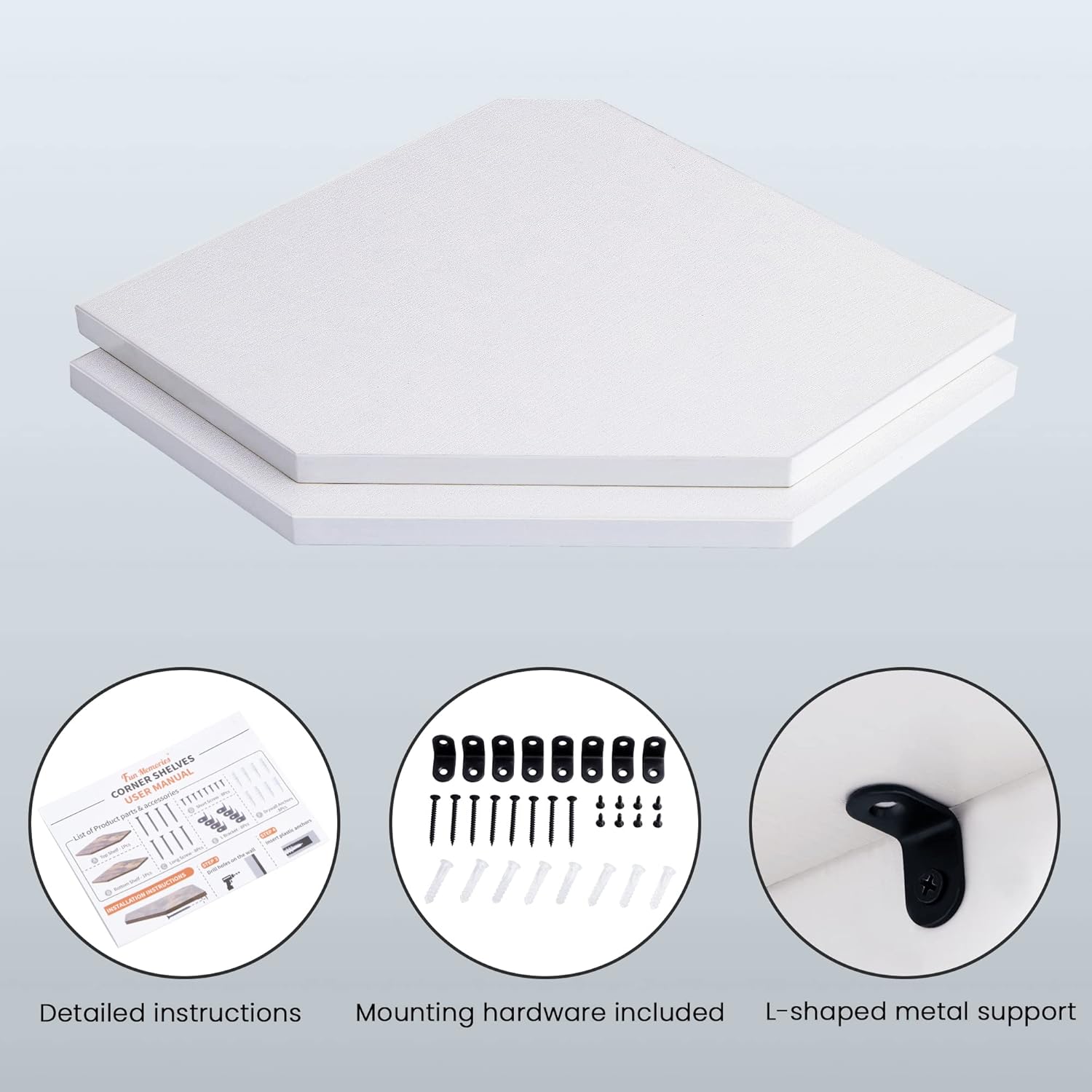 - 【Easy to Mount】The package comes with user-friendly instructions and all the necessary mounting hardware. Just place the corner wall shelf level in your desired location and secure it in place using the hidden bracket connectors provided, followed by screws.