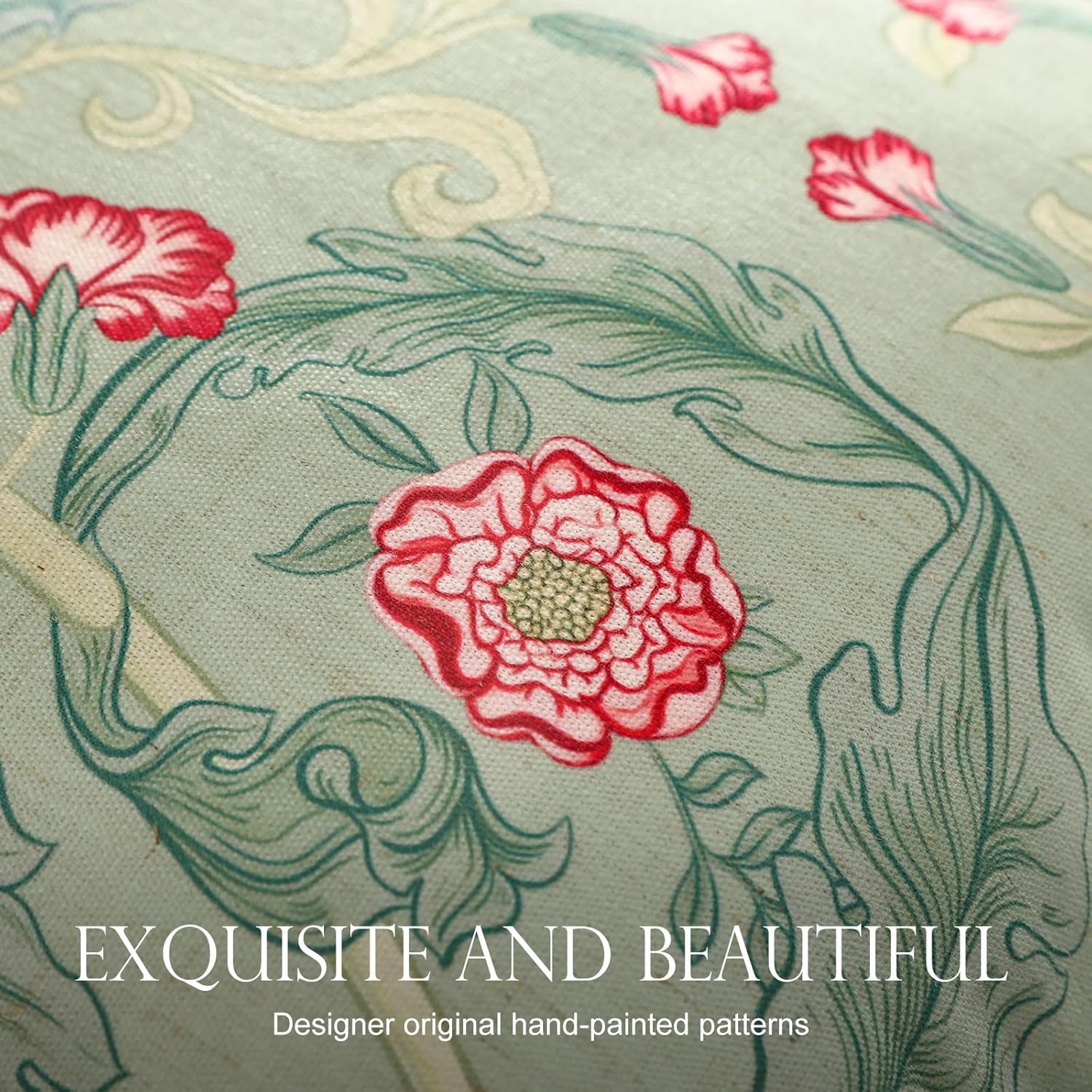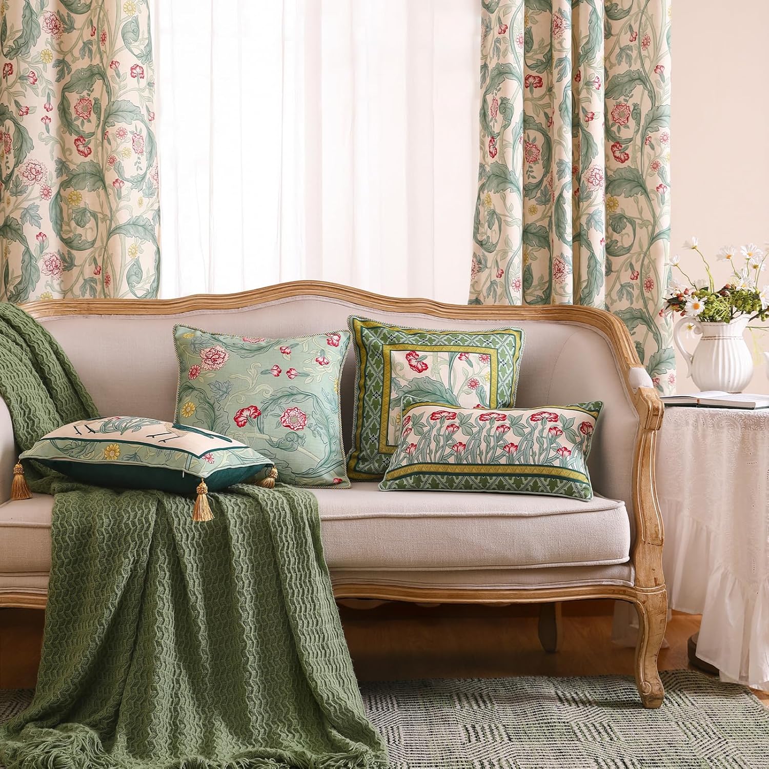 patdrea Designer Pack of 4 Throw Pillow Covers,French Vintage Rustic Linen with Green Floral Pattern Pillows Cover,Decorative Lumbar Square Pillowcases Cushion for Bed Living Room Outdoor Car