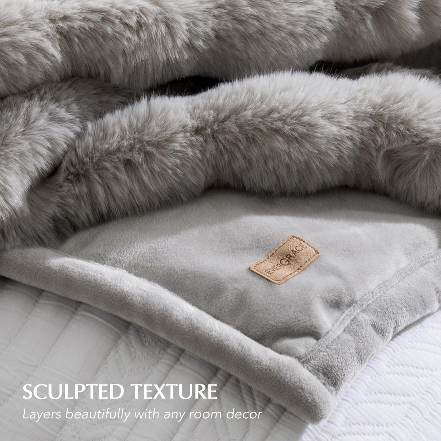 EVERGRACE Ultra Soft Luxury Fluffy Ridgeline Faux Rabbit Fur Throw Blanket, Thick Warm Bubble Throw for Bed, Cozy Plush Reversible Blankets for Couch, Chair, Sofa, Taupe, 60x80 Inches, 870 GSM