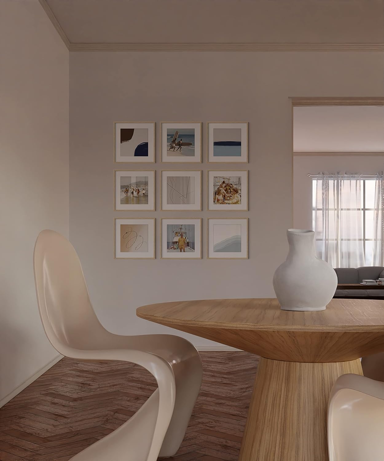 - Wall Frames for Living Room Set: Our picture frames 16x16 are meticulously constructed using oak wood, known for its timelessness and durability. The slim profile of the 16x16 picture frame effortlessly blends into any interior decor, adding a contemporary touch. The clean lines and sleek design make the square gallery frames set of 25 the perfect choice for those seeking a stylish, understated display solution