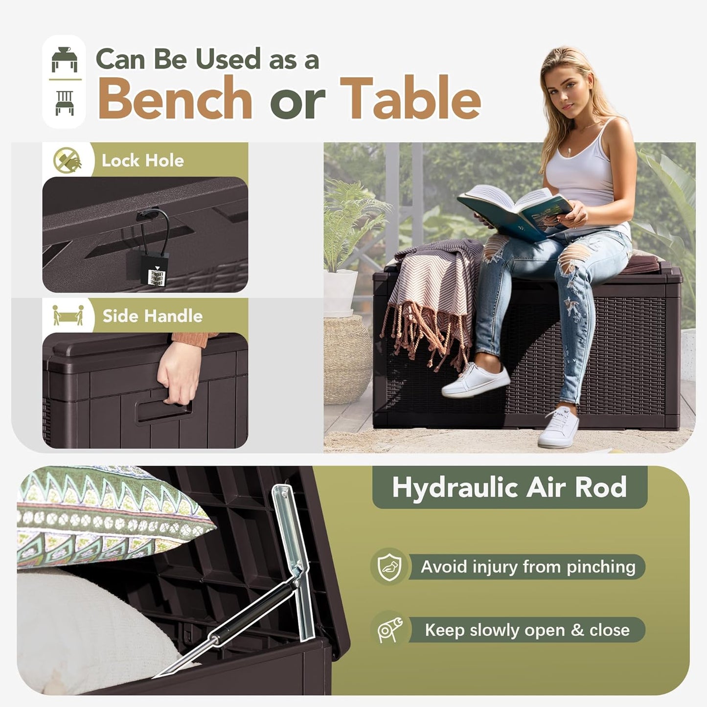 - [Wide Applications]Simple appearance with multi-purpose design, this storage box can easily integrate into your various indoor and outdoor scenarios like living room, balcony, porch, patio, deck or poolside. Store your tools or cushions