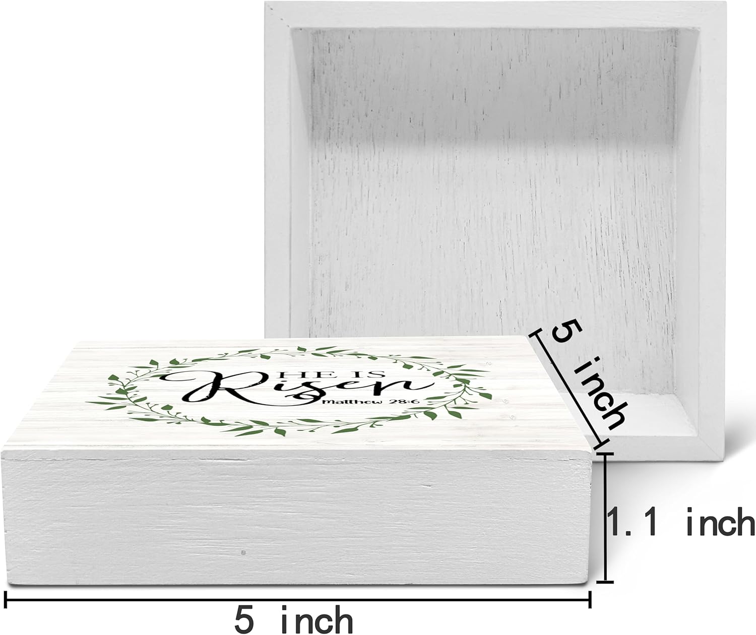 SRADMO He Is Resen Wood Box Sign Desk Decor, Christian Decor Wooden Sign Decoration For Home Office, Wooden Sign Decorations Indoor, Christian Signs For Home Decor Shelf Table Decor