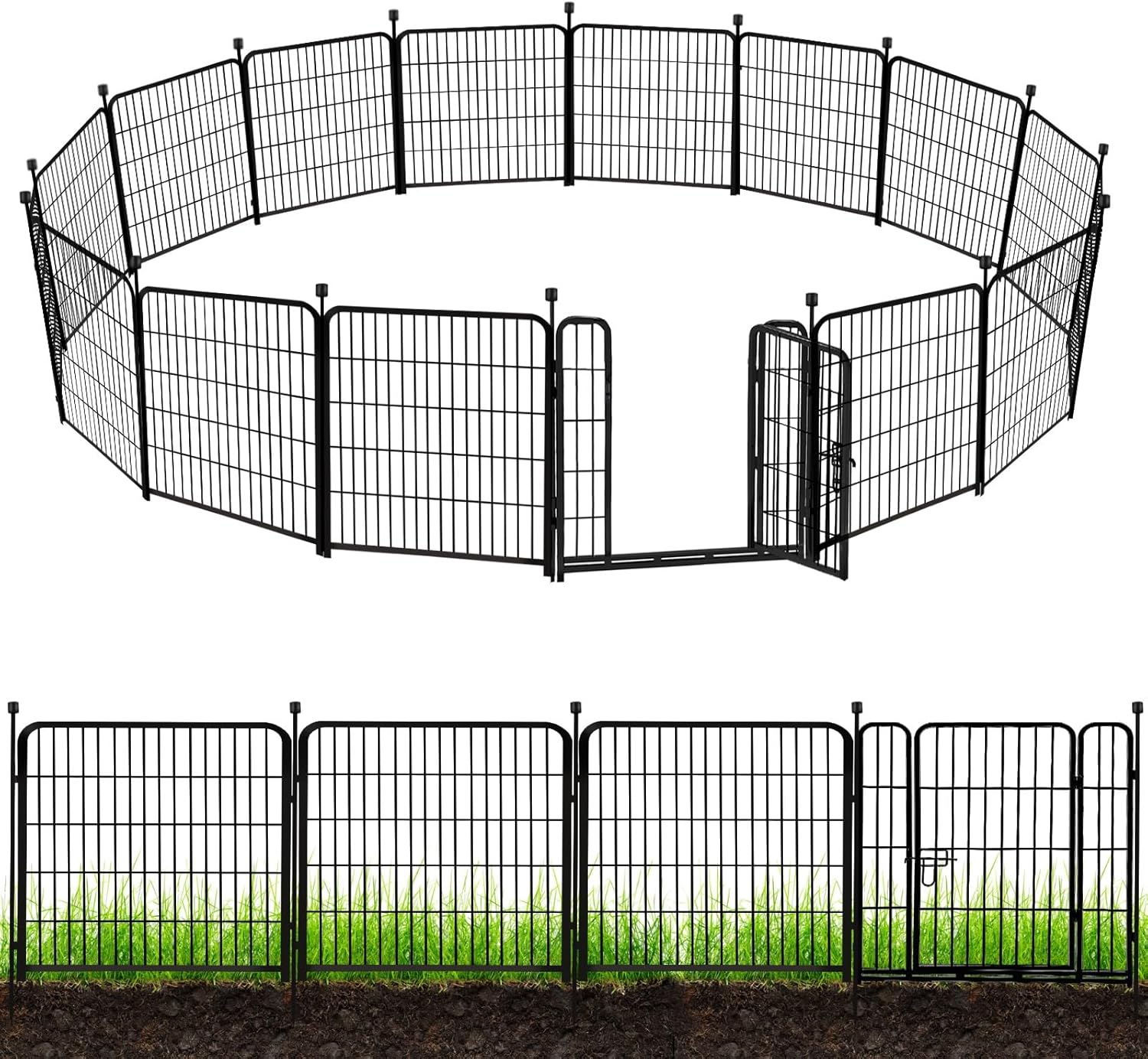 - Wide Application: 1)This Decorative Garden Fence is Suitable as a Lawns, Vegetable Garden Borders . 2)The Fences Can be Used as Outdoor Pet's Fence, and It also Can be Used as Indoors Dog Playpen, the Bottom of The Pole is Fitted with An Anti-friction Sleeve, That Won't Scratch Your Floors. 3) As Camping Fence When You RV Trip