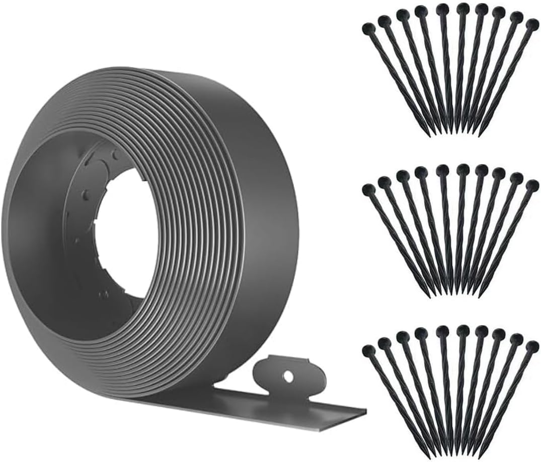 - 【Garden Edging Kit】This Garden Edging is 33ft length,10cm height and with 30pcs spiral spikes for 20cm length.You just need to install 1 spikes every foot to reinforce lawn edges,locating on the ground,then your garden will be more neat and beautiful