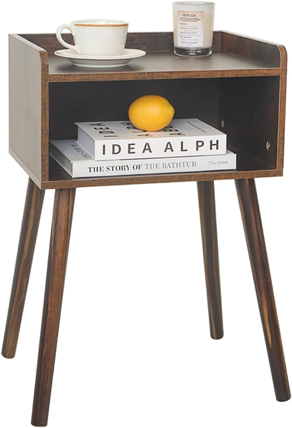MaxSmeo Nightstand, Mid Century Modern Side Table Bedroom with Storage, Small End Bedside Table with Solid Wood Legs for Living Room, Office Small Spaces (Rustic Brown)