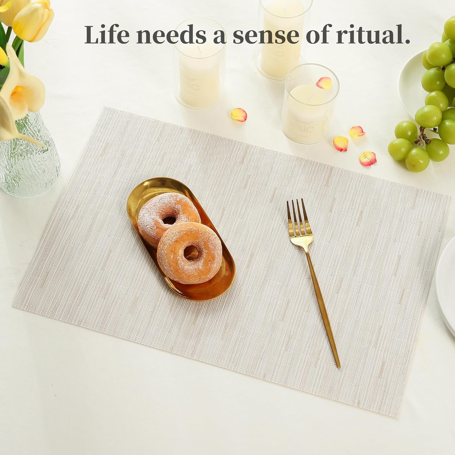 Leetaltree Pale Beige Placemats Set of 6 - Heat Resistant Non-Slip Place mats for Dining Table, Washable Durable PVC Vinyl Woven Table Mats(Pale Beige, 6)