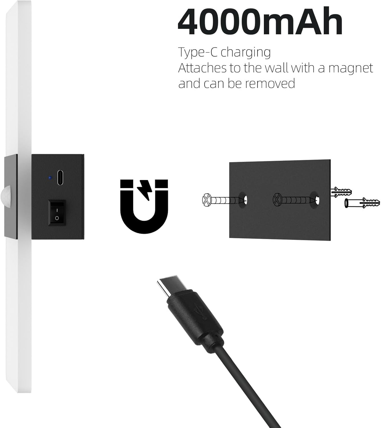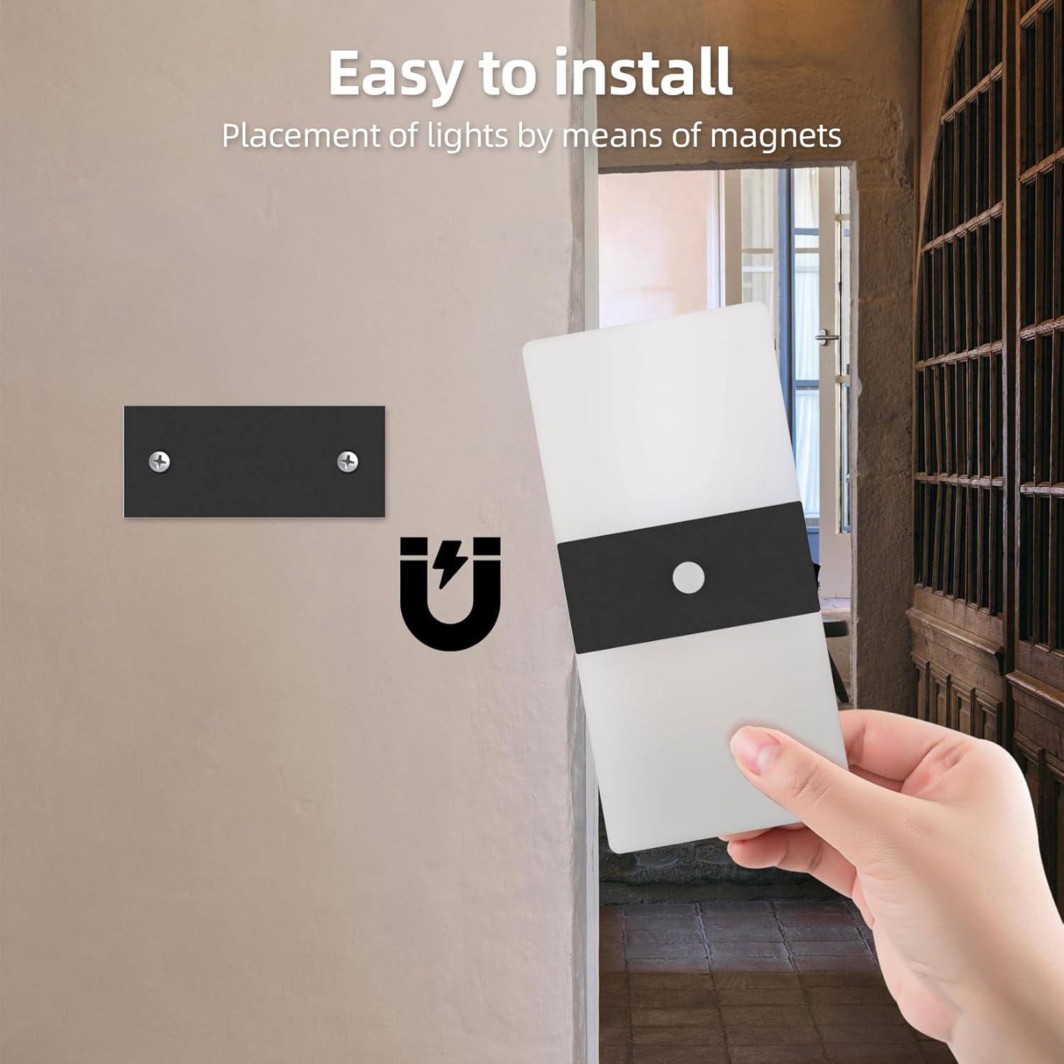 - 💡【Easy Installation】1.Use the included screws to secure the iron piece of the base to the wall.2.Magnetic adsorption, the battery wall light lamp body can be easily adsorbed to the base by the built-in magnet, so it can be effortlessly mounted on any iron surface.