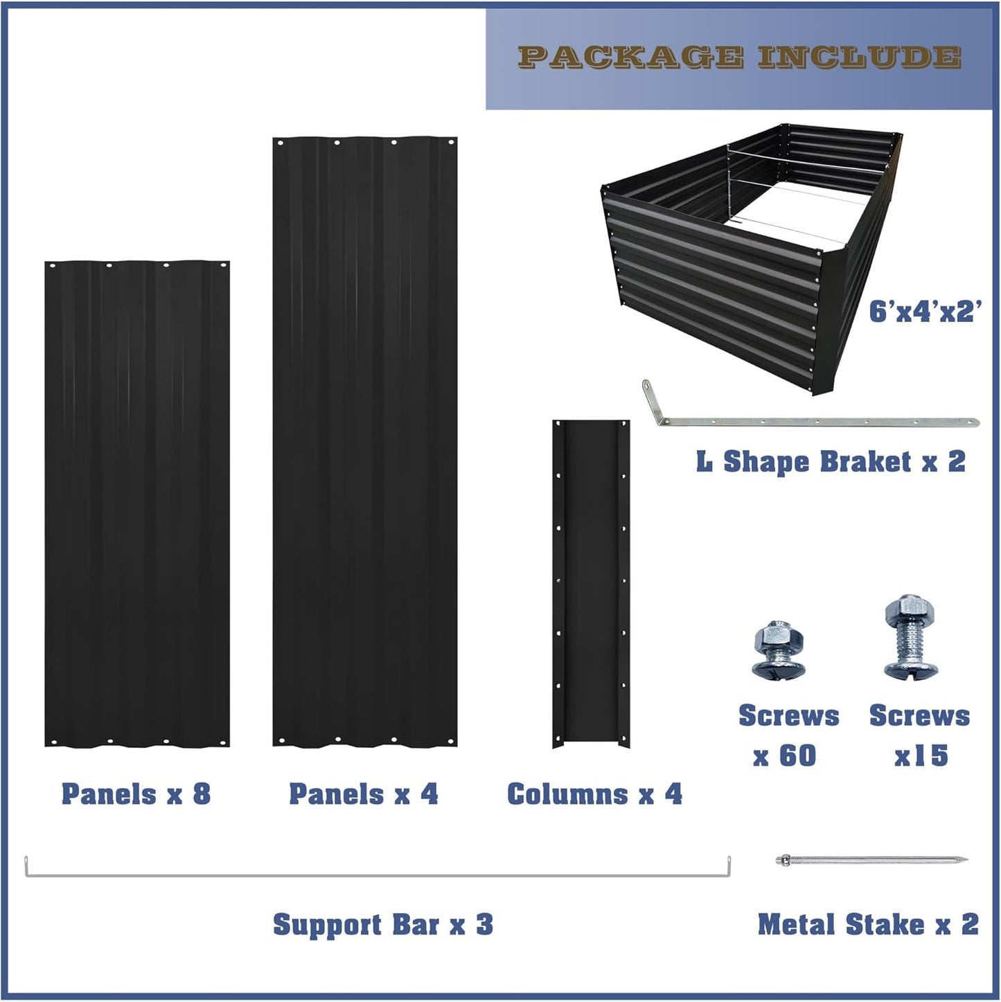 6x4x2FT Metal Raised Garden Bed Kit, Galvanized Outdoor Garden Bed Planter Box for Vegetables, Flowers, Herbs, Succulents and More, Black