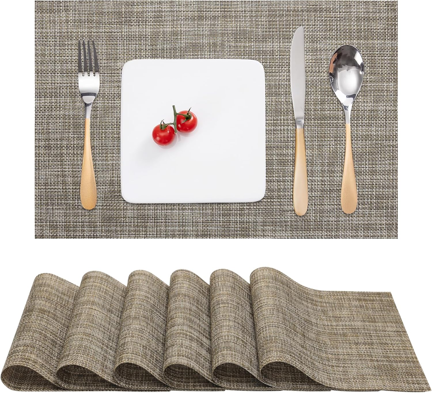 Myir JUN Placemats Set of 6, Vinyl Woven Placemats Place Mats Indoor Washable Table Mats Non-Slip Place mats for Dining Table (Caramel, Set of 6)