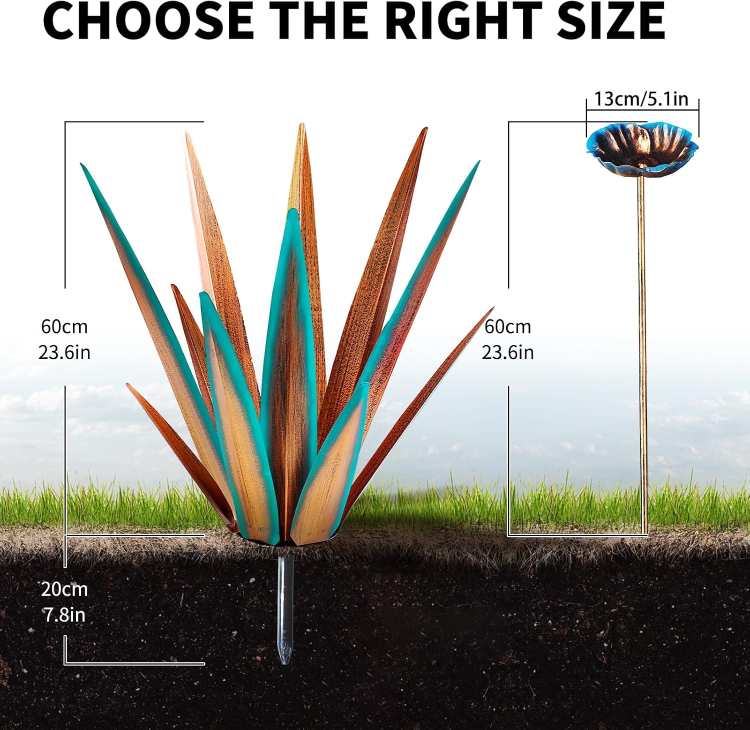 - ❤ [Simple to Install] - The tequila patio decor art sculptures can be placed on the ground directly, easy to install and no need any tools, just put the metal flowers decor anywhere you want.